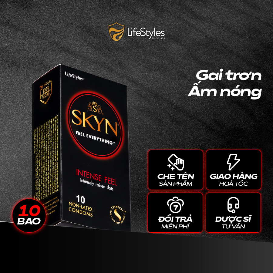 Bao cao su gai Skyn Intense Feeling - Hộp 10 bao *CHE TÊN SẢN PHẨM, ĐẢM BẢO KÍN ĐÁO LifeStyles SKYN Intense Feeling thích hợp cho các tình yêu muốn tăng nhiệt, nồng nàn, chạm