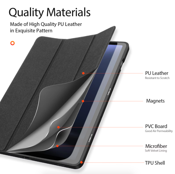 Bao da chính hãng Dux Ducis Domo có khay đựng bút là thiết kế mới của hãng Dux Ducis với vẻ đẹp thời trang cao cấp cùng tính năng tiện dụng, an toàn bảo vệ toàn diện cho máy. Bao da Dux Ducis Domo Samsung Tab rất đáng sở hữu bởi: Chất liệu nhựa TPU và vải độc đáo, lạ mắt, thân thiện với môi trường. Cảm biến thông minh tự động tắt mở khi đóng mở nắp bao da giúp tiết kiệm pin triệt để. Phần lưng bao da có khay đựng bút chính hãng Dux Ducis Domo được thiết kế những ô tổ ong giúp tản nhiệt tốt, không nóng máy. Dựng máy nhiều tư thế Mẫu bao da có nhiều màu sắc.