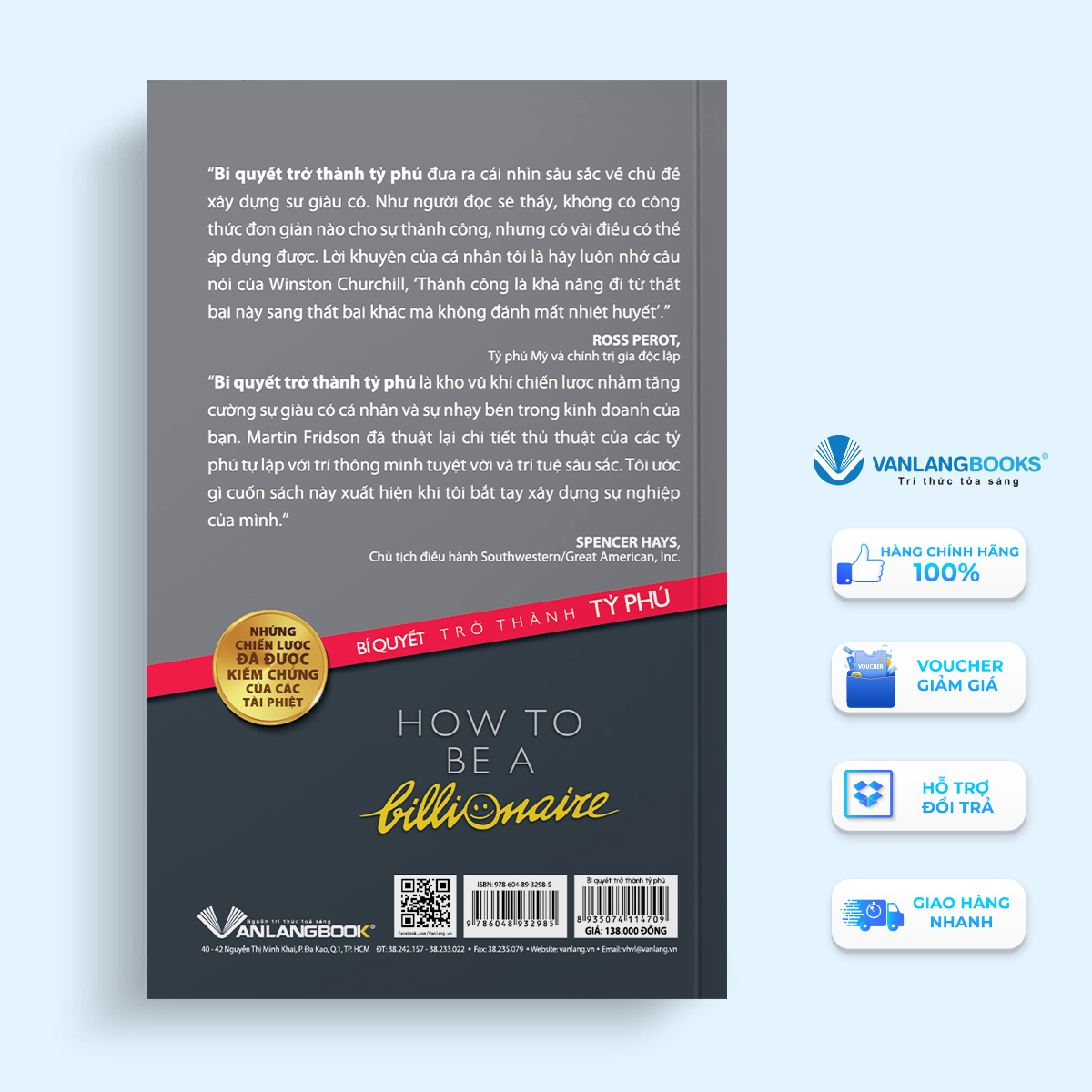 “Bí quyết trở thành tỷ phú đưa ra cái nhìn sâu sắc về chủ đề xây dựng sự giàu có. Như người đọc sẽ thấy, không có công thức đơn giản nào cho sự thành công, nhưng có vài điều có thể áp dụng được. Lời khuyên của cá nhân tôi là hãy luôn nhớ câu nói của Winston Churchill, ‘Thành công là khả năng đi từ thất bại này sang thất bại khác mà không đánh mất nhiệt huyết’.”