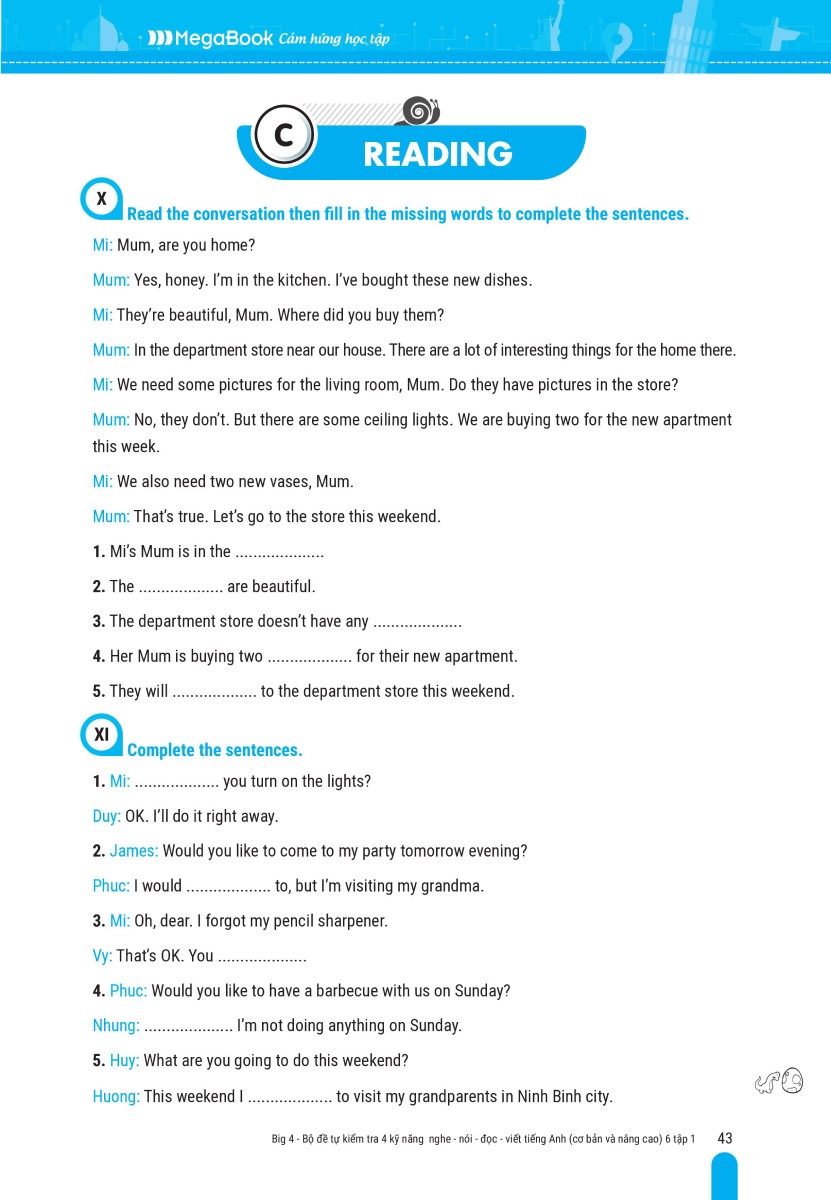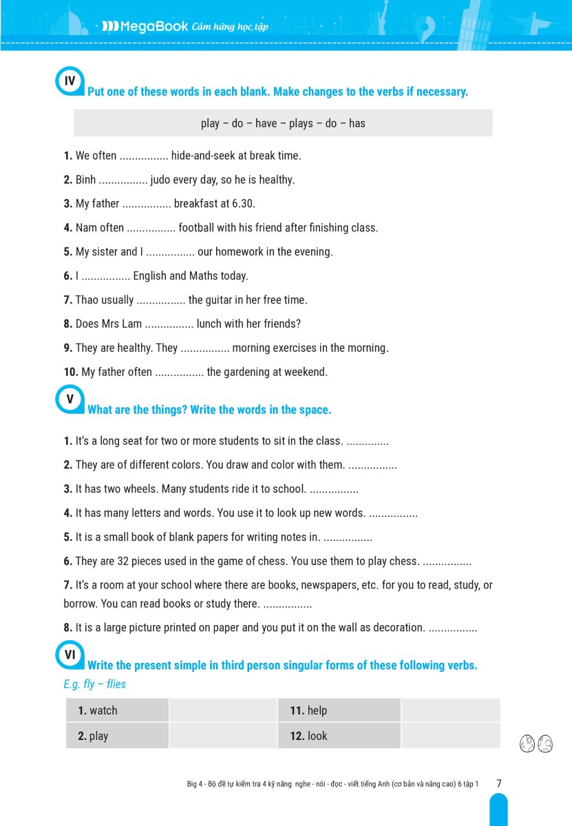 ✨Big 4 Bộ Đề Tự Kiểm Tra 4 Kỹ Năng Nghe - Nói - Đọc - Viết Tiếng Anh (Cơ Bản Và Nâng Cao) 6 Tập 1 (Global) _Mega