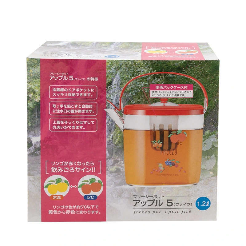 Bình pha trà kèm lưới lọc Ishi maru 1,2L xuất xứ Nhật Bản Thương hiệu: JAPAN Sản xuất tại Nhật Bản. Hàng nhập trực tiếp từ Nhật Dung tích: 1,2 lít Kích thước sản phẩm: 18,1 × 9,1cm × 21cm (Dung tích chứa đầy: 1.2L) Trọng lượng: 230g Sản phẩm có màu nắp Đỏ, kèm theo Lọc trà Trắng Khả năng chịu nhiệt từ: -20oC tới 120oC Thành phần: Nhựa PP kháng khuẩn, không mùi, không độc hại, khẳ năng chịu nhiệt nóng, lạnh tốt (An toàn khi sử dụng) Công dụng: Dùng uống nước, pha trà. Có rây lọc kèm theo giúp việc pha và vệ sinh bình trà sau khi uống trở nên dễ dàng. Bình có dung tích lớn, thích hợp sử dụng khi đông người Đặc biệt: Bình có tem nhãn đổi màu báo nhiệt độ nước trên hoặc dưới 5 độ C Quả táo vàng là nhiệt độ nước bình thường trên 5 độ C Quả táo đỏ là nhiệt độ nước dưới 5 độ C Đặc điểm nổi bật