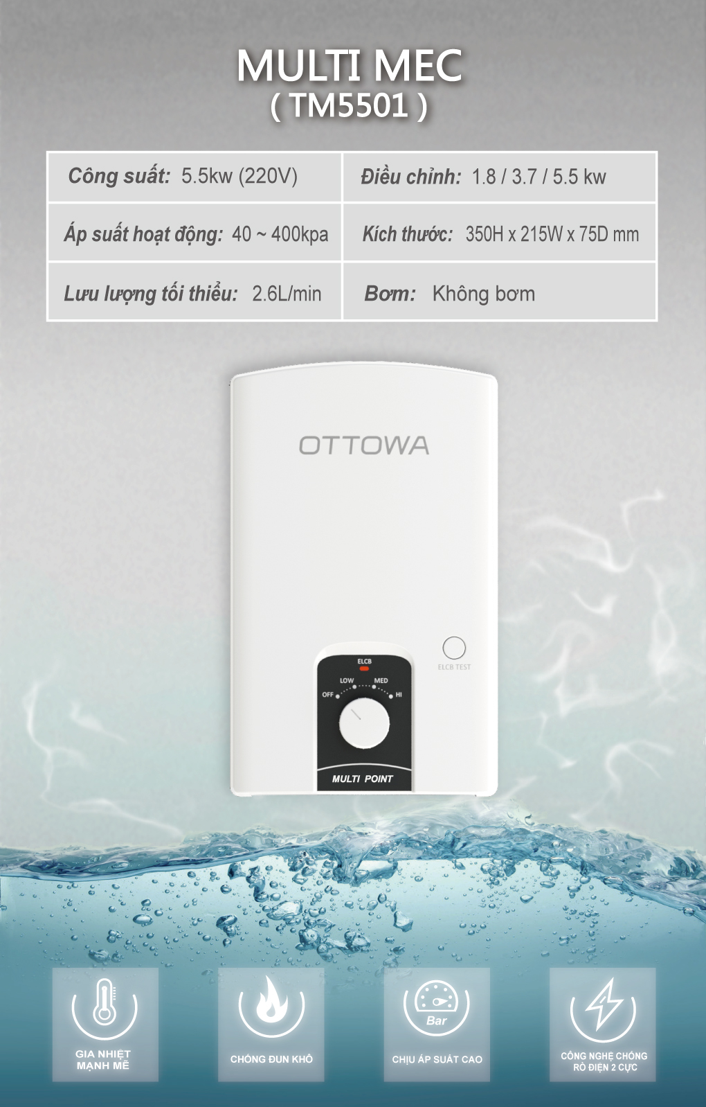 ✨Bình nước nóng cho rửa bát OTTOWA TM5501 - Hàng chính hãng