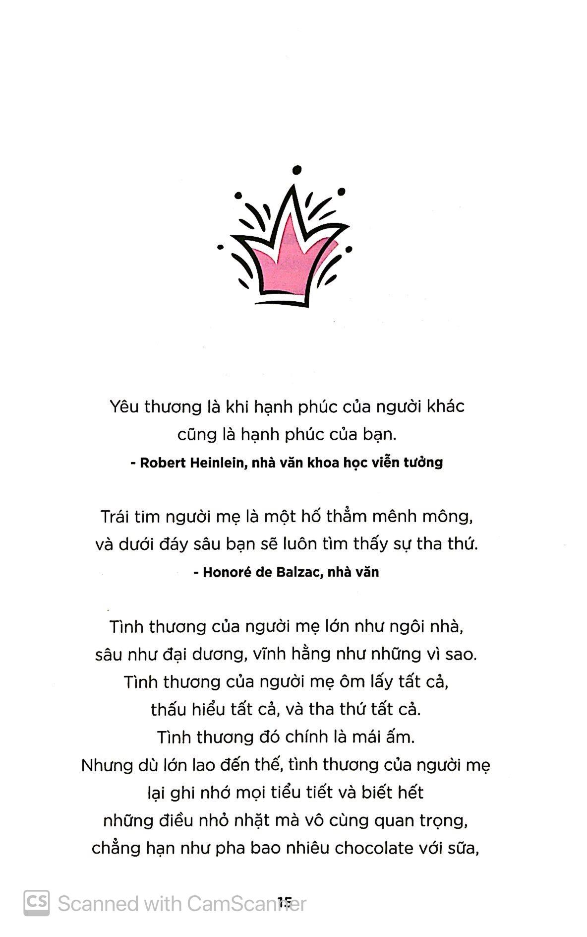 Quyển sách này sẽ là bạn của người mẹ. Mang theo lời của nhiều danh nhân tự cổ chí kim, của những vị hoàng đế, tổng thống, nhà văn, nghệ sĩ - tất cả là những người con - quyển sách này sẽ nhắn nhủ người mẹ rằng: “Bạn làm tốt lắm!”