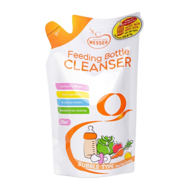 ✨Bộ 4 Gói Nước Rửa Bình Sữa Wesser (500ml x 4)