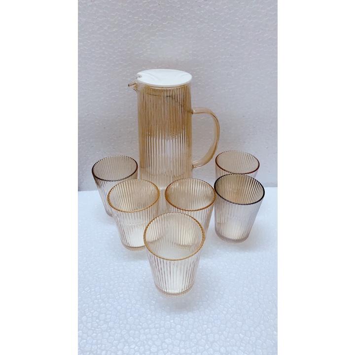 ✨BỘ BÌNH ĐỰNG NƯỚC UỐNG THỦY TINH KÈM 6 CỐC MÀU VÀNG GOLD VÂN TĂM SANG TRỌNG