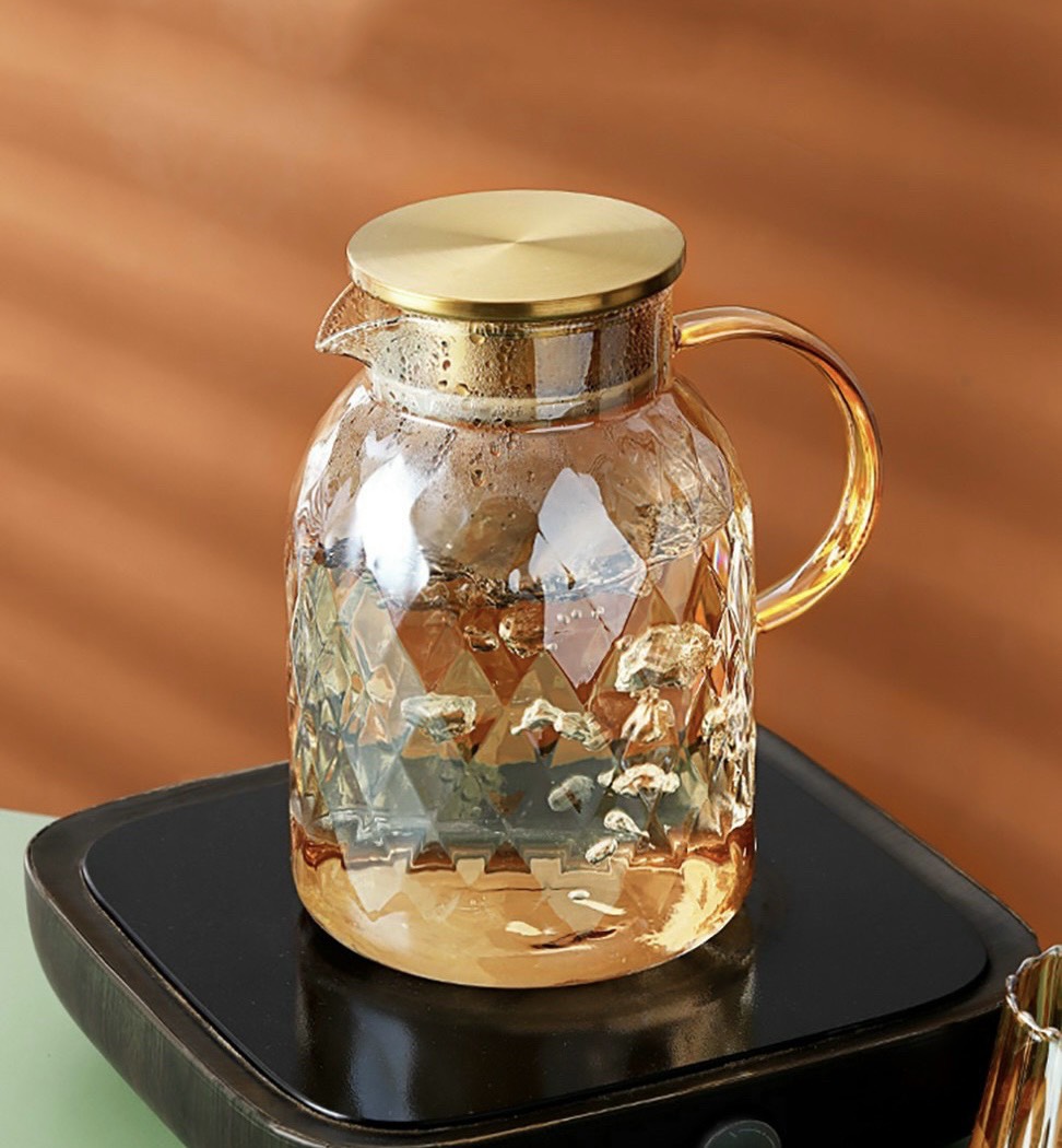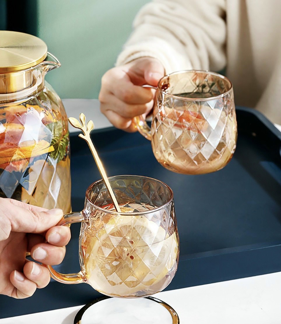Bộ bình 6 cốc thủy tinh chịu nhiệt mạ vàng cao cấp