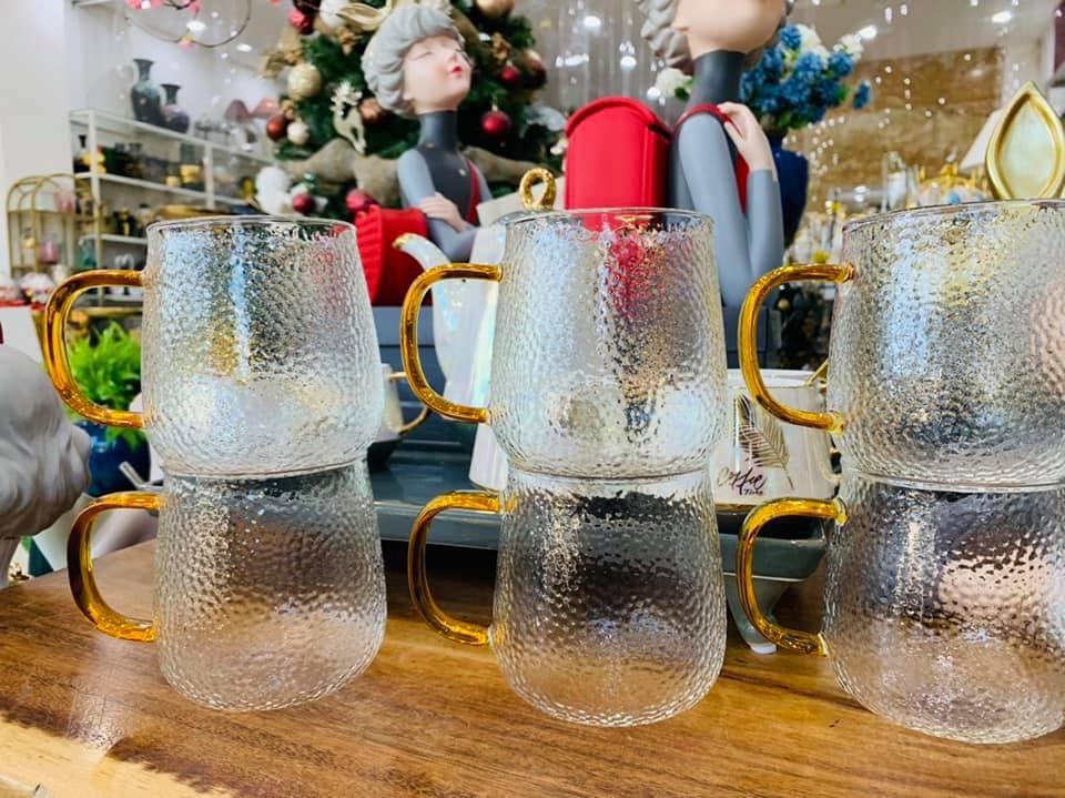 ✨BỘ BÌNH THỦY TINH CHỊU NHIỆT CAO CẤP ĐỰNG NƯỚC UỐNG KÈM 6 CỐC QUAI VÀNG ( 1 BÌNH + 6 CỐC) - VD6