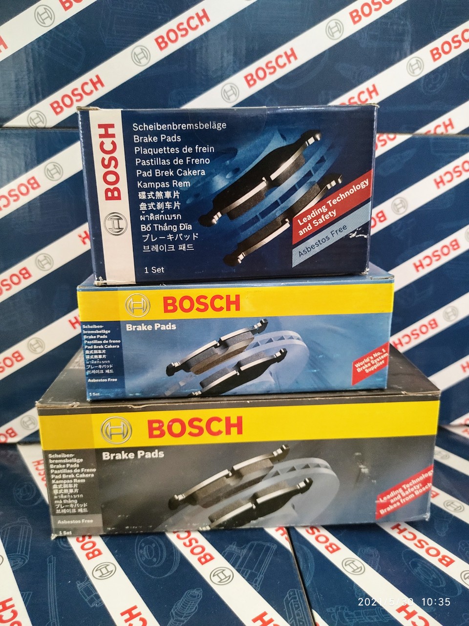 Robert Bosch. đã phát minh ra hệ thống phanh cân bằng điện tử ESP cùng với Daimler-Benz và dẫn đầu thế giới về công nghệ phanh Tính Ưu Việt của Bố Thắng Chính Hãng Bosch.: • Hệ thống phanh của Bosch. cung cấp hiệu suất tốt nhất, đặc biệt là cho các dòng xe châu Âu, đảm bảo sự an toàn cho hành khách • Được thiết kế để đưa xe về trạng thái dừng một cách an toàn và nhất quán, cũng như để giảm thiểu quãng đường phanh trong những tình huống phanh khẩn cấp. • Có bộ phận báo mòn và mép vát khe phủ ngăn ngừa rỉ sét và kéo dài độ bền • Các mâm phanh 100% thép mới và được sơn tĩnh điện giúp cung cấp cấu trúc bền vững cho thời gian sử dụng lâu dài • Vật liệu chất lượng cao, không chứa Amiăng đảm bảo mòn đều, hiệu suất phanh chắc chắn và thời gian sử dụng lâu dài. • Đáp ứng và vượt xa yêu cầu kỹ thuật của phụ tùng chính hãng.   Ưu điểm của Bố Thắng Chính Hãng Bosch.: • Amiăng có thể gây ra ung thư phổi và 80% má phanh trên thị trường đều chứa Amiăng. Má phanh Bosch. 100% không sử dụng Amiăng • Hệ số ma sát cao, phanh ổn định ngay cả trong điều kiện khắc nghiệt • Giảm ồn và giảm rung lắc, vận hành êm ái, tuổi thọ cao •Tăng hiệu suất vận hành trong những điều kiện ẩm ướt •Độ mài mòn thấp, Ít bám bụi, thân thiện với môi trường • Hiệu suất vận hành tương đương hoặc cao hơn Phụ tùng chính hãng • Đáp ứng hoàn toàn các tiêu chuẩn về hệ thống phanh/thắng của EU, US