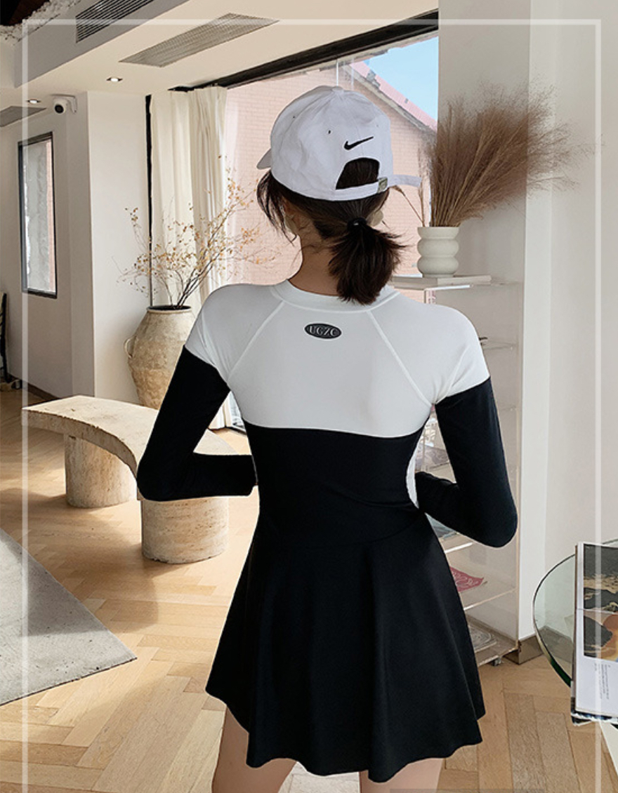 ✨Bộ đồ bơi bikini nữ 1 mảnh kín đáo đi tắm biển giấu bụng váy liền áo dài tay chống nắng - B.27
