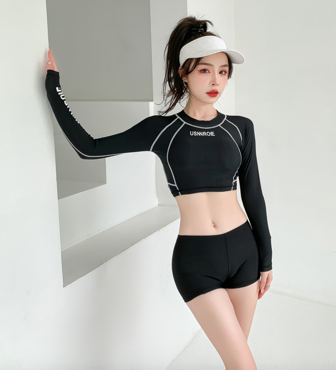 Set Đồ Bơi Nữ Rời Đùi Dài Tay Đi Biển Đi Bơi Chất liệu Polyester 95%, mật độ dệt vừa Áo có sẵn lớp đệm, hông áo có thể rút lên làm croptop cá tính