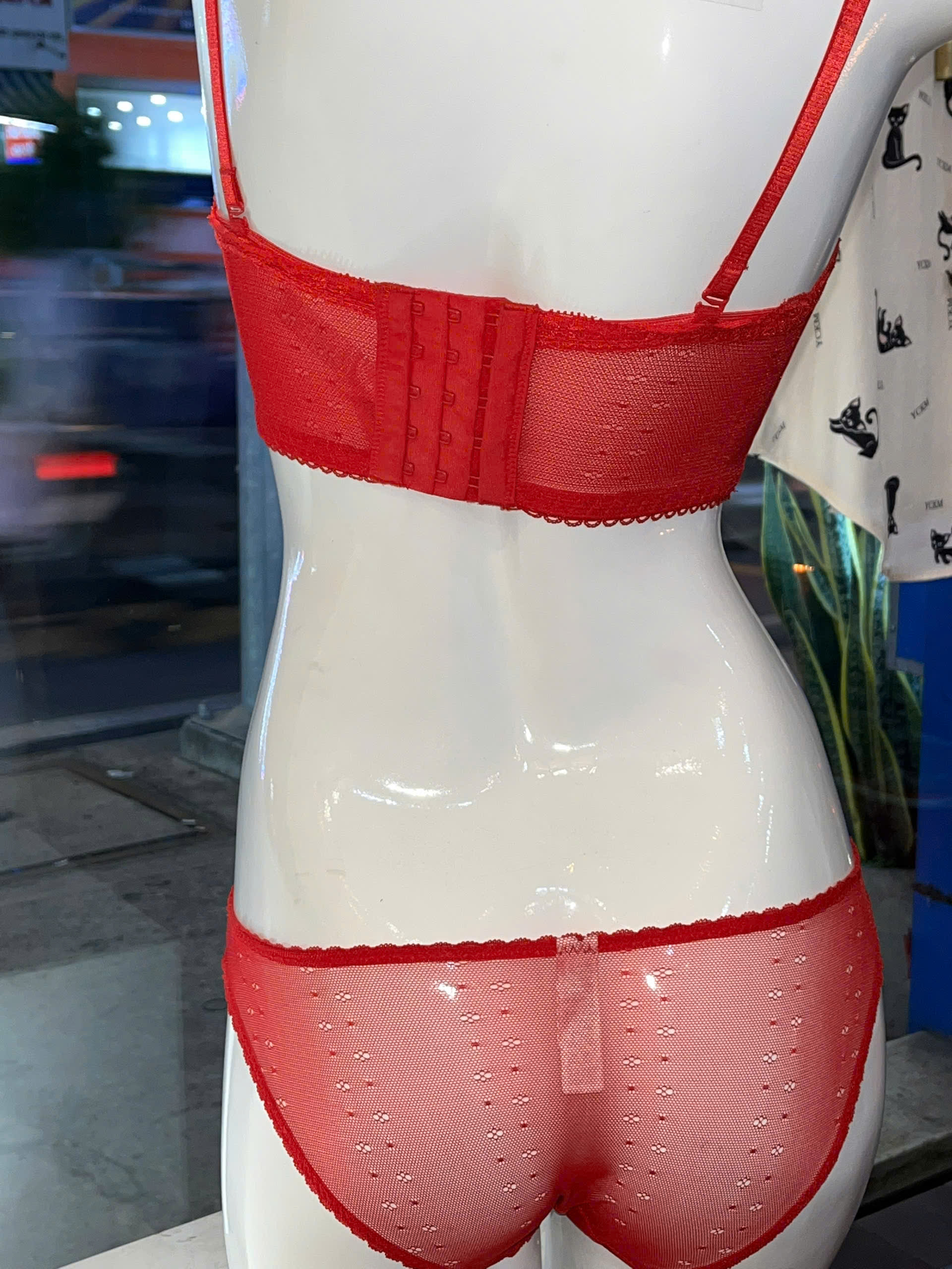 Thương hiệu: Sanny House Tên sản phẩm: Bộ đồ lót cúp ngang Chất liệu: ren cao cấp mềm mịn, co giãn, thấm hút tốt Kiểu dáng: gợi cảm, trẻ trung, hiện đại Màu: đỏ Size: