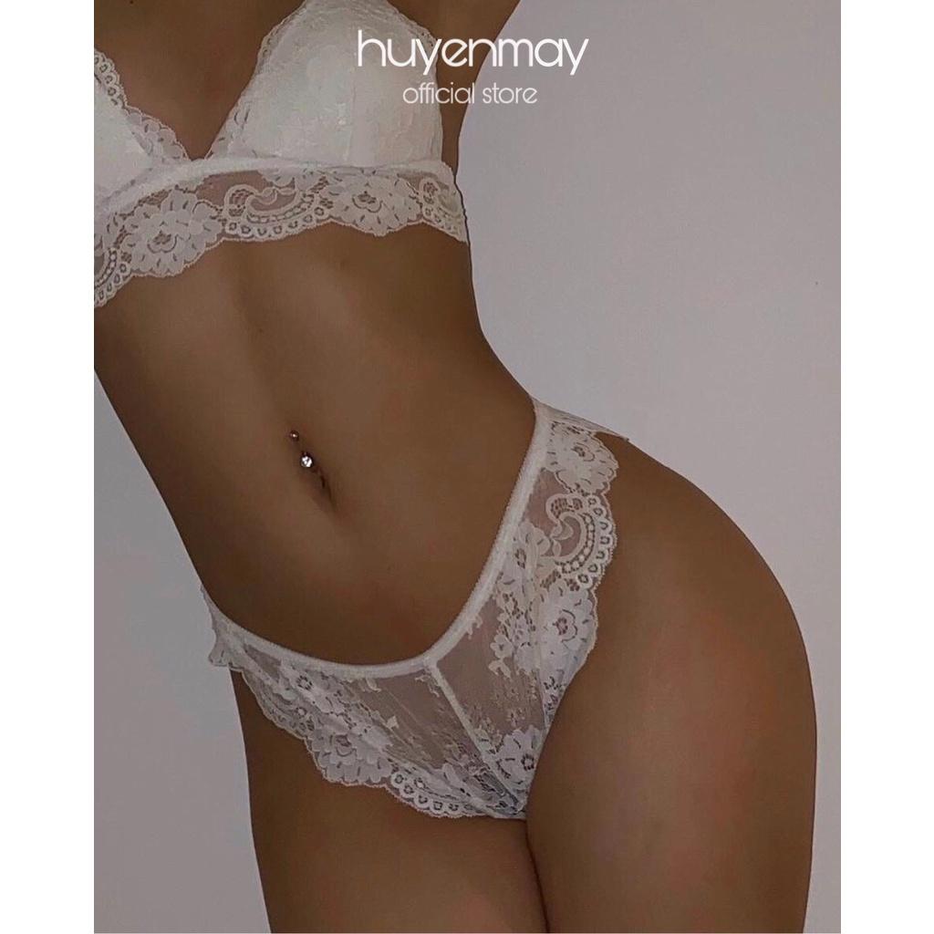 ✨Bộ Đồ Lót Croptop Ren huyenmay - Hoa Hồng Trắng