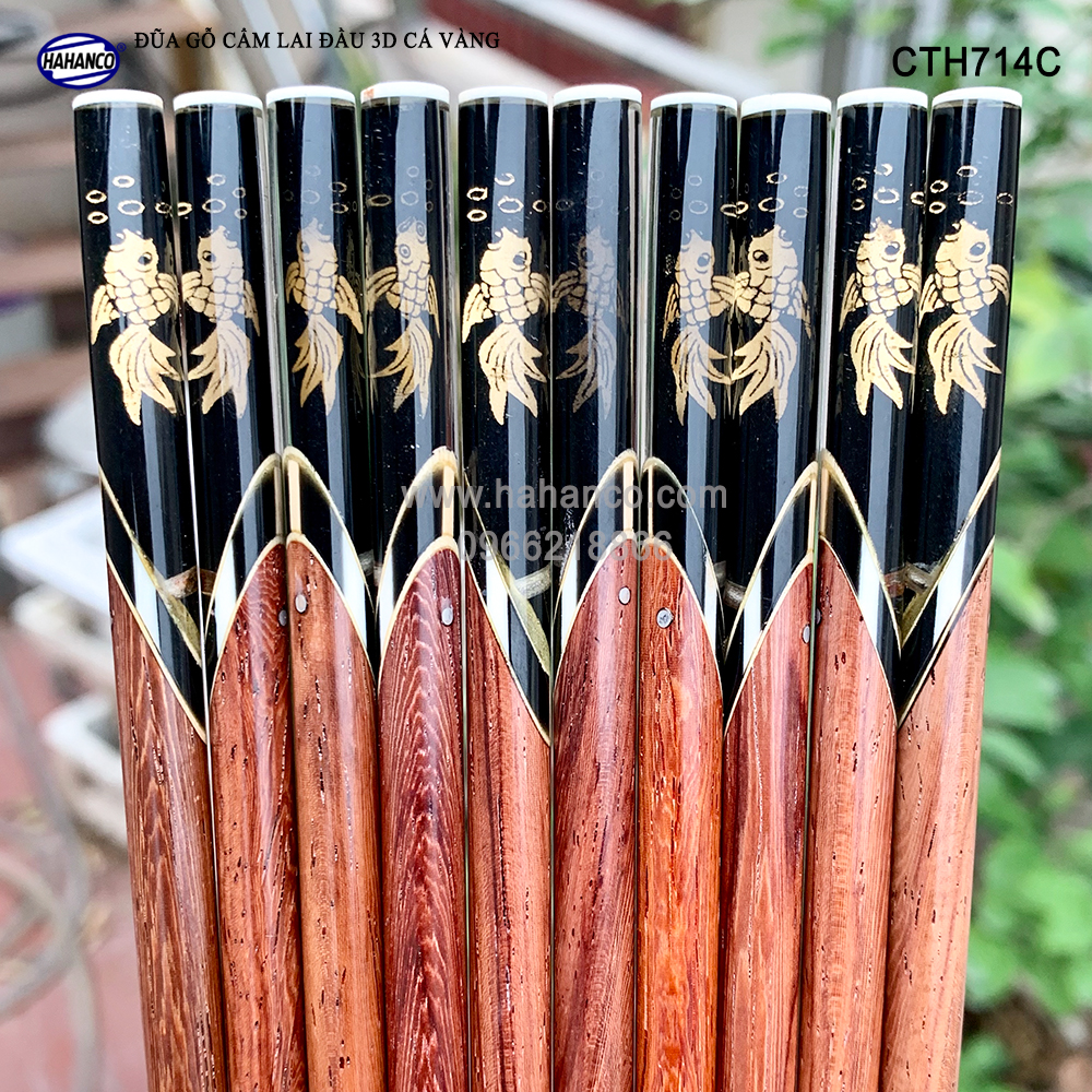 - Đũa: Được làm bằng gỗ Cẩm Lai, đầu đũa 3D - Đũa siêu đẹp