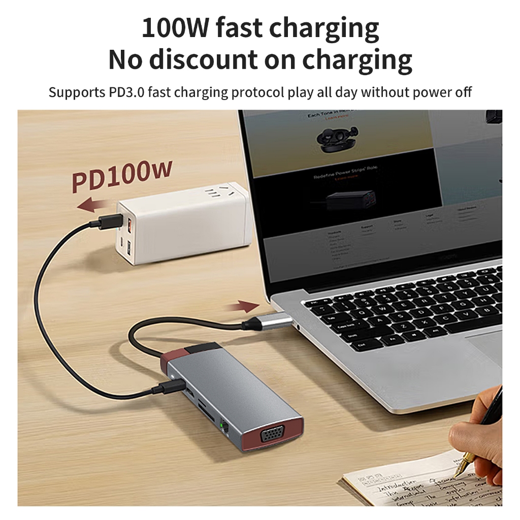 Type C+USB3.03+SD+TF+RJ45 1000M+HDMI2+VGA+AUDIO3.5mm+PD 100W+USB-C Data2.0