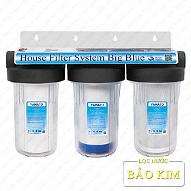 - Bộ lọc nước đầu nguồn 3 cấp lọc YAMATO 10 inch Bigblue (béo) tiêu chuẩn tích hợp lõi lọc công nghệ 3 cấp lọc loại bỏ tạp chất cặn bẩn và hóa chất tồn dư trong nước: Clo, hợp chất Nhỏ gọn phù hợp lắp đặt chung cư, nhà dân