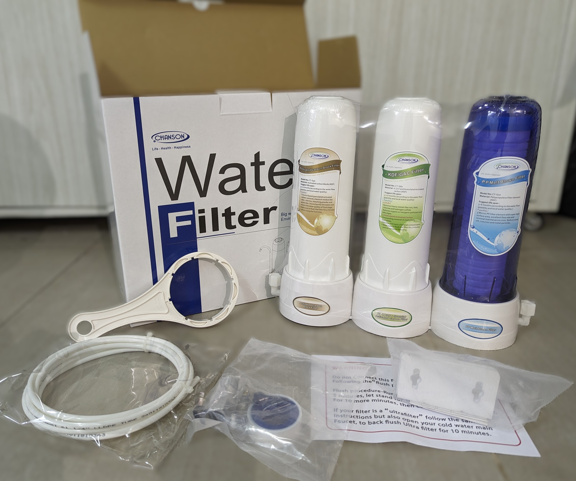 Bộ lọc SF, cũng là bộ lọc C3 của Chanson bán ở Mỹ và các nước châu Âu. Chức năng loại bỏ các tạp chất độc hại trong nước như chloramines, chì, arsenic, sulfur, thuốc trừ sâu có thể gây các loại bệnh hoặc vấn đề về sức khỏe liên quan đến đường ruột và tiêu hóa về lâu dài. Bộ lọc vẫn giữ các đặc tính hữu ích của nước, giữ lại khoáng chất cần thiết cho sức khỏe (Trong khi lọc RO loại bỏ hoàn toàn khoáng chất cần thiết và còn thải ra rất nhiều nước). Nước uống trực tiếp tại vòi, không cần bình chứa (như lọc RO). Bộ lọc có thể lắp liền với vòi trên bàn hoặc bộ lọc lắp âm dưới bàn với vòi inox 304 trên bàn. Có 2 cách lắp -- > VUI LÒNG GHI CHÚ CHỌN LOẠI VÒI NÀO DƯỚI ĐÂY