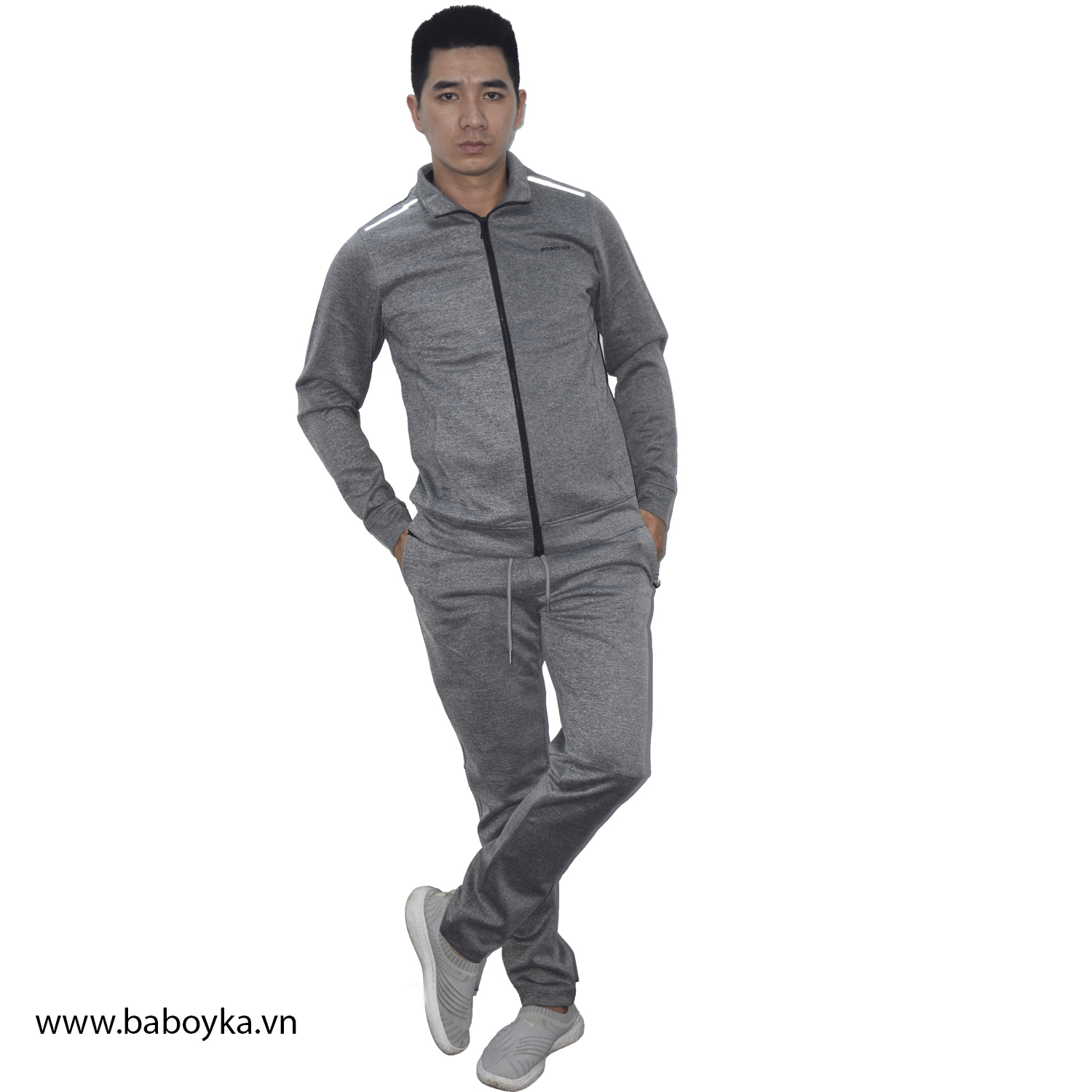 Bộ khoác nỉ baboyka bo gấu cam kết không bai, không xù trong suốt quá  trình sử dụng. 2: Thành phần và trọng lượng: Bộ nỉ thể thao baboyka được may từ chất liệu nỉ air layer có trọng lượng vải 280 Gram/m2. Với trọng lượng đó kế hợp với cấu trúc dệt độc đáo mang lại cho người mặc cảm giác ấm áp, song rất nhẹ nhàng và không gây cảm giác gò bó như các bộ trang phục khác vào mùa đông. Bạn sẽ luôn tươi mới, năng động cùng với trang phục bộ thu đông baboyka. Chất liệu được dệt từ 100% sợi poly cao cấp đã qua quá trình xử lý kỹ lưỡng trước khi dệt, mang lại cảm giác siêu mướt khi tiếp xúc với da. II/ Thiết kế bộ nỉ suông baboyka thể thao: 1:In nổi các chi tiết phản quang: Bộ nỉ thu đông nam baboyka quần ống suông in họa tiết phản quang được in nổi các họa tiết bằng cau su non nguyên sinh, an toàn và thân thiện với sức khỏe người dùng. Hình in được in trên cầu vai áo và chính giữa cuối lưng áo giúp tạo nên nét thể thao cho người mặc. Với màu ghi tối được phủ 1 lớp phản quang trên hình in giúp thu hút sự chú ý của người khác. Nguyên liệu để in họa tiết là cau su non cho khả năng bám dính bề mặt vô cùng tốt. Hình in bền với nhiệt không bị bong tróc và đặc biệt không bị vở nứt mặt hình in khi phơi trực tiếp dưới ánh nắng mặt trời. Logo baboyka trên áo và quần được in cao thành với font chữ nam tính khỏe khắn. 2: Thiết kế ông suông thể thao: Bộ nỉ thu đông baboyka ống suông chất nỉ thể thao với quần ống suông được cắt sẻ phần đầu gối tạo điểm nhấn khỏe khoắn nam tính cho người mặc. Với thiết kế này chúng tôi cam kết quần ống suông baboyka không thể bị bùng gối và luôn giữ form dáng như mới. 3: Thiết kế khóa túi tiện dụng an toàn: Bộ nỉ thu đông nam baboyka khóa túi tiện dụng được thiết kế với 2 khóa túi sườn áo khoác, 2 khóa túi sườn quần và 1 khóa giọt lệ túi hậu quần, đảm bảo cho bạn có thể yên tâm bảo quản đồ cá nhân mà không lo bị rơi mất. Với thiết kế khóa giọt lệ tụi hậu mang lại cho bạn cảm giác thoải mái tự nhiên không cảm thấy bị kệnh khi ngồi.    III/ Chi tiết sản phẩm: 1: Thông số sản phẩm: Bộ nỉ thể thao baboyka chất liệu nỉ độc đáo dáng suông  được cung cấp tới khách hàng 4 sai: Sai M cho người có cân nặng từ 55 tới 62 kg, Chiều cao <1.65m. Sai L cho người có cân nặng từ 62 kg tới 68 kg. Chiều Cao < 1.70m. Sai XL cho người có cân nặng từ 68 kg tới 75 kg, Chiều cao <1.75m. Sai 2XL cho người có cân nặng từ 75 kg tới 85 kg, Chiều cao <1.85m. 2: Màu sắc sản phẩm: Bọ nỉ suông in họa tiết phản quang thể thao có 2 màu cho khách hàng lựa chọn là; Ghi sáng và Ghi tối . Sản phẩm này là tài sản cá nhân được bán bởi Nhà Bán Hàng Cá Nhân và không thuộc đối tượng phải chịu thuế GTGT. Do đó hoá đơn VAT không được cung cấp trong trường hợp này.