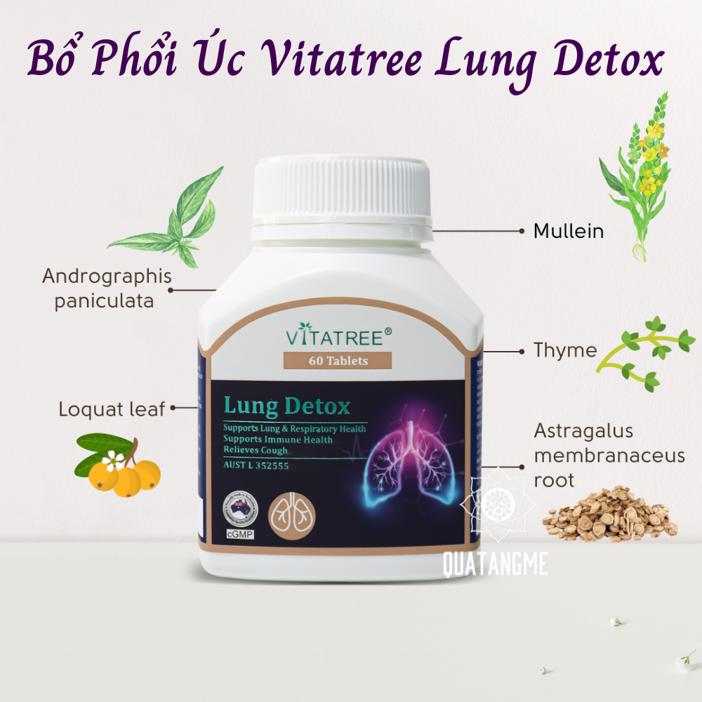 Bổ Phổi Úc Vitatree Lung Detox Giúp Hỗ Trợ Giảm Ho, Tăng Cường Sức Khỏe Hô Hấp, Hỗ Trợ Tăng Cường Sức Đề Kháng Cho Cơ Thể