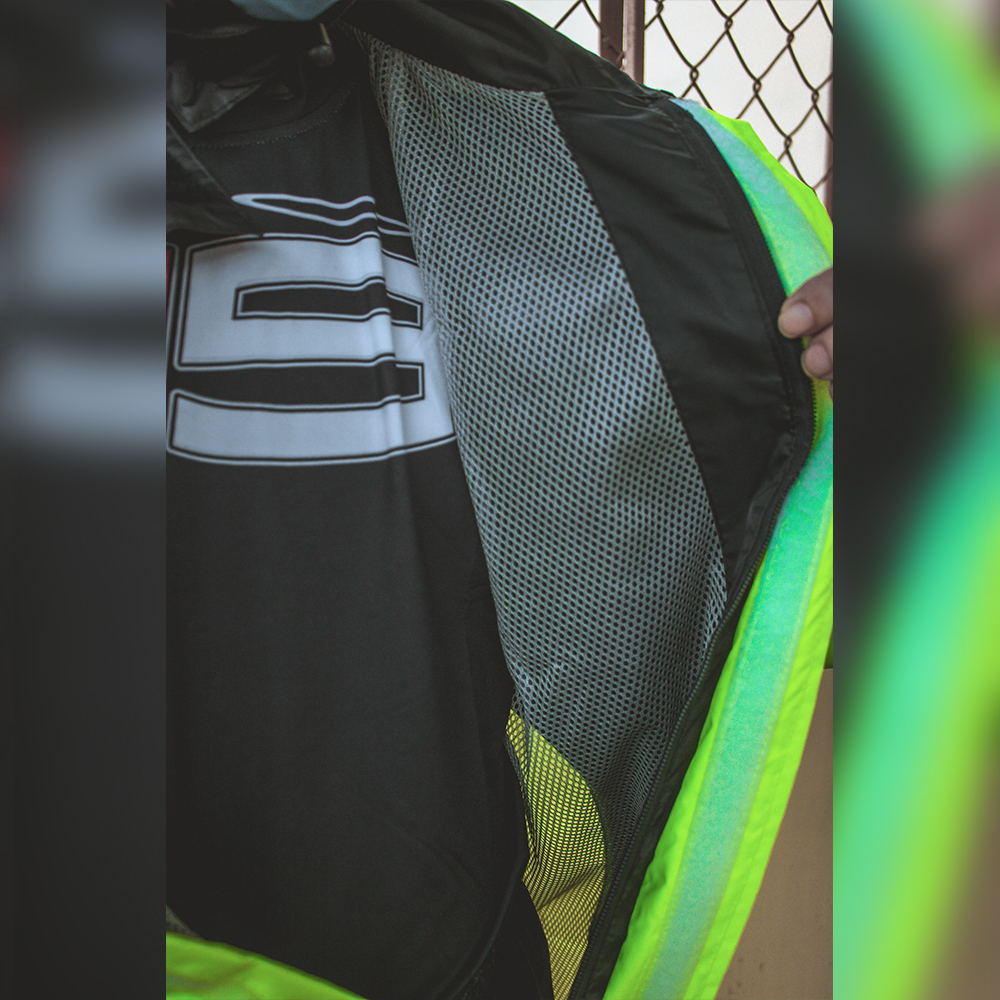 Áo có chi tiết phản quang hỗ trợ an toàn khi dùng vào ban đêm.