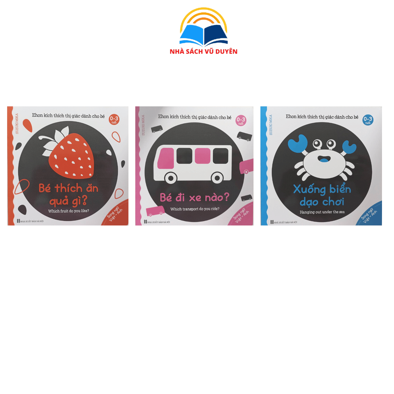 Bộ sách Ehon kích thích thị giác gồm nhiều chủ đề thú vị như Hình khối đáng yêu, Tham quan trang trại, Lên rừng khám phá, Bé đi xe nào, Xuống biển dạo chơi, Bé thích ăn quả gì?... được thiết kế đặc biệt dành cho trẻ từ 0 – 3 tuổi. Hình ảnh đơn giản, màu sắc tương phản cao (đen – trắng – đỏ – vàng – xanh) giúp kích thích thị giác và sự tập trung của bé. Nội dung gần gũi, dễ hiểu, phù hợp với giai đoạn bé bắt đầu khám phá thế giới xung quanh. Chất liệu giấy an toàn, bền đẹp, góc bo tròn an toàn cho bé. Giúp bé phát triển khả năng nhận biết, tư duy ngôn ngữ, trí tưởng tượng và sự tương tác với cha mẹ. Đây là bộ sách lý tưởng cha mẹ nên có để đồng hành cùng bé trong giai đoạn đầu đời, vừa học vừa chơi, tạo nền tảng phát triển toàn diện. THÔNG TIN CHI TIẾT BỘ SÁCH - Ehon kích thích thị giác dành cho bé 0-3 tuổi (Bộ 6 cuốn) ✪ Tên tác giả: Suzuki Mika ✪ Nhà phát hành: Công ty TNHH MTV Sách và thiết bị giáo dục Việt Hà ✪ Nhà xuất bản: NXB Hà nội ✪ Ngôn ngữ: Tiếng Việt ✪ Ngày xuất bản: 2021 ✪ Số trang: 18 trang/1 cuốn ✪ Loại bìa: Bìa mềm