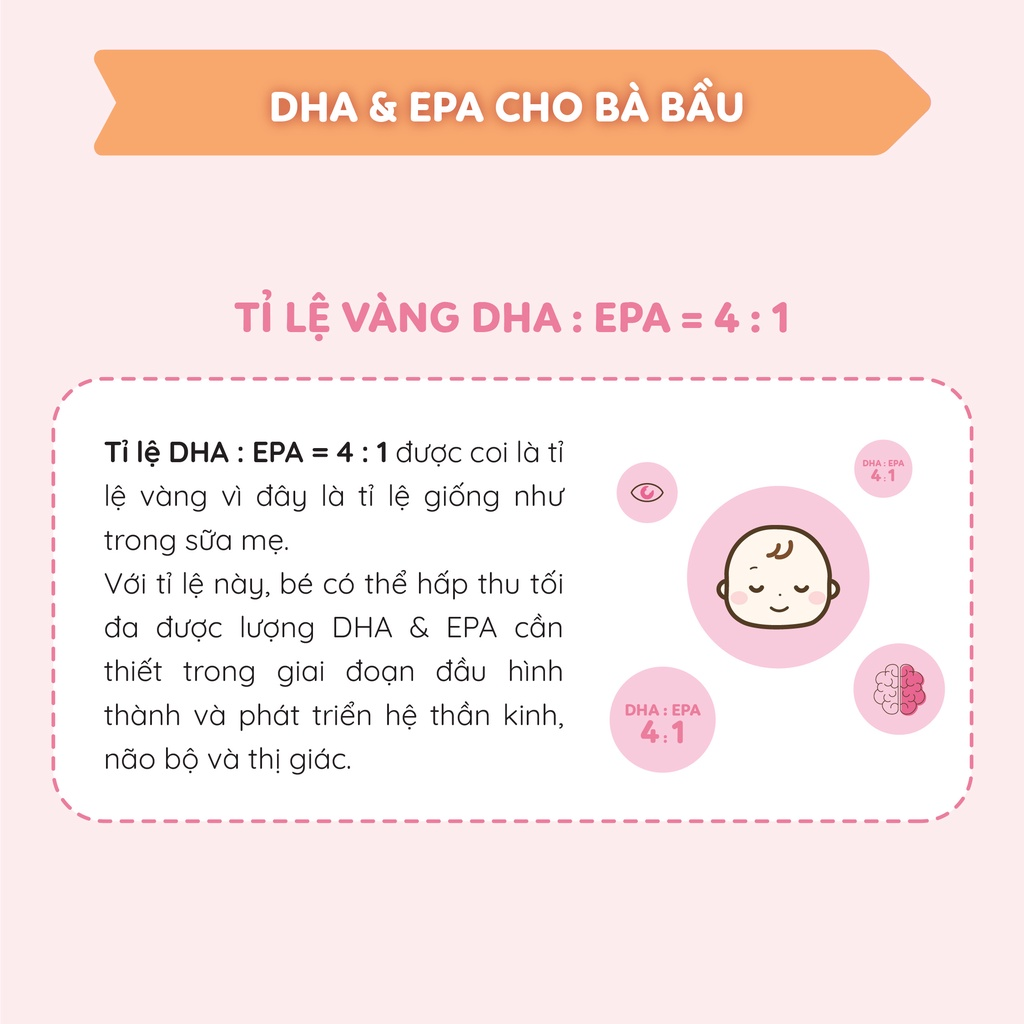 - Dòng sản phẩm bổ sung đến từ Nhật Bản chứa vitamin E gốc thực vật là chất chống oxy hóa mạnh mẽ giúp bảo vệ DHA và EPA, cung cấp trọn vẹn dưỡng chất cho mẹ bầu.