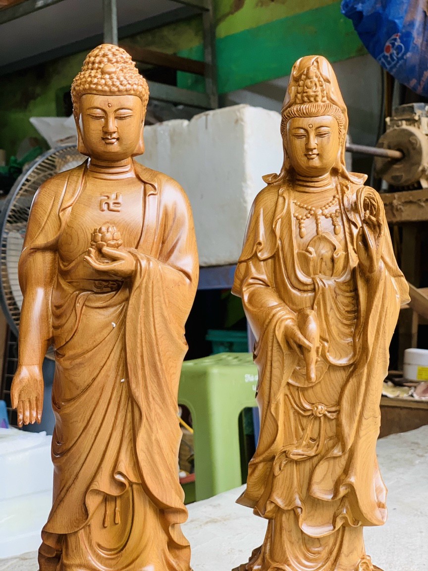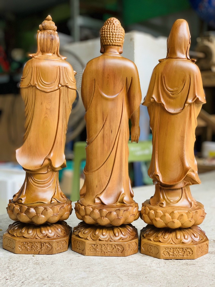 Bộ tượng phật tam thánh được làm bằng chất liệu gỗ bách xanh thơm nức tự nhiên 100% Kích thước cao 50×15×15cm _ Bộ tượng phật tam thánh được trạm khắc tỉ mỉ tinh sảo kỳ công .Được làm và hoàn thiện do bàn tay khối óc tài hoa .Từ những người thợ giàu kinh nghiệm .Cũng như tay nghề cao trong làng nghề truyền thống .Chính vì thế bộ tượng phật tam thánh đã đáp ứng đầy đủ những tiêu trí ( Đẹp bền rẻ ) Thẩm mỹ nghệ thuật với chất lượng tuyệt vời