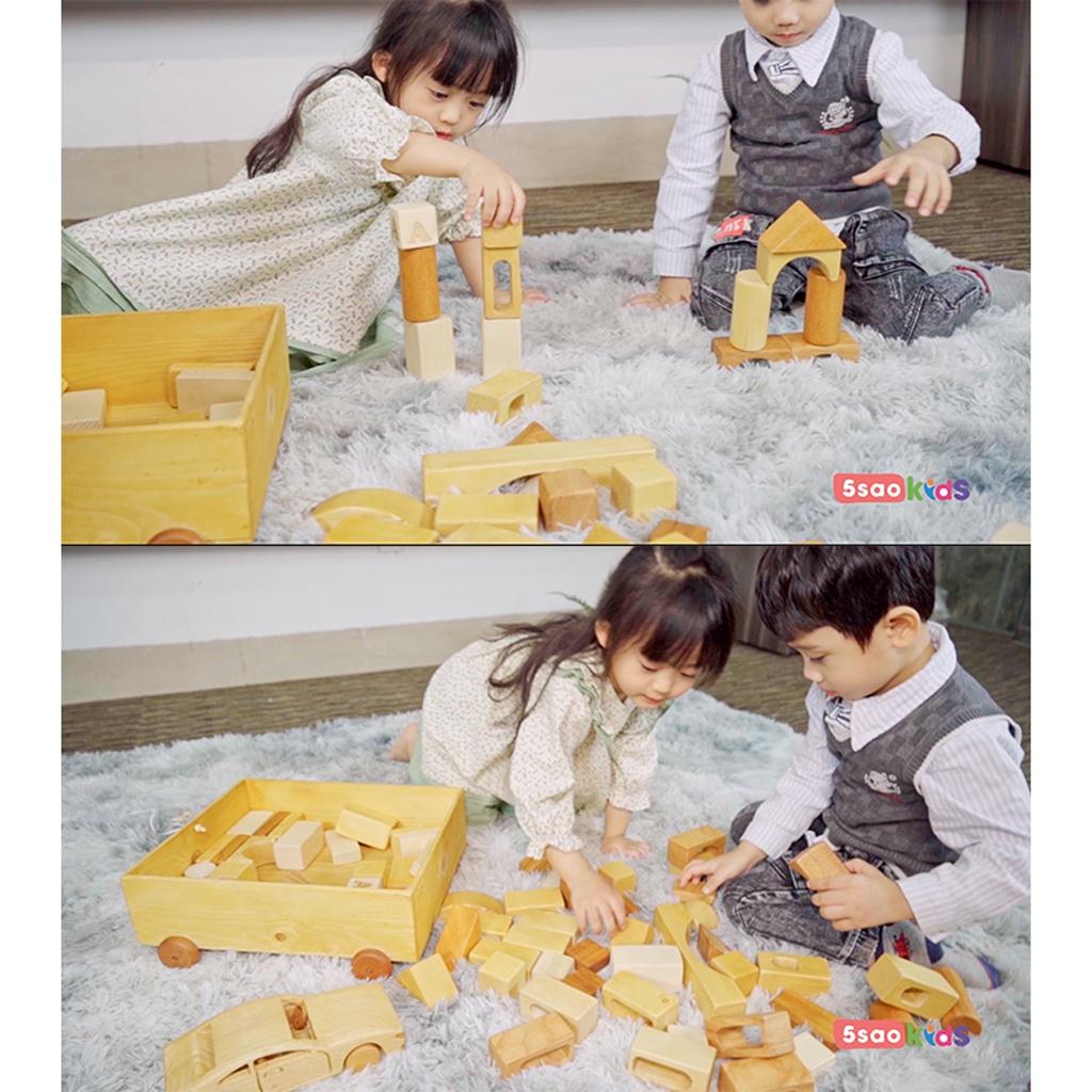 Bộ xếp khối hình học 99 chi tiết bằng gỗ bao gồm 99 miếng ghép khác nhau, có đủ các loại hình khối như khối vuông, chữ nhật, hình trụ, …cho bé kiến tạo những