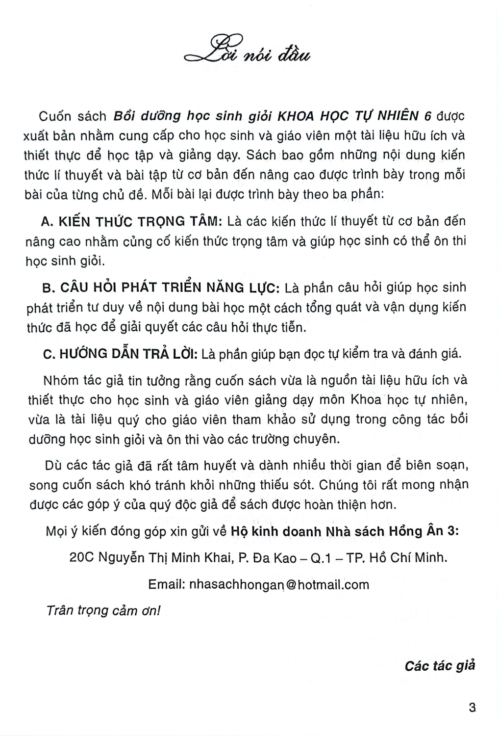 Nhóm tác giả tin tưởng rằng cuốn sách vừa là nguồn tài liệu hữu ích và thiết thực cho học sinh và giáo viên giảng dạy môn Khoa học tự nhiên, vừa là tài liệu quý cho giáo viên tham khảo sử dụng trong công tác bồi dưỡng học sinh giỏi và ôn thi vào các trường chuyên.