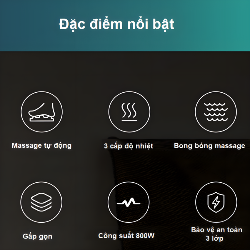 1. Đặc điểm nổi bật - Chức năng sưởi ấm - Kích thích tuần hoàn và thư giãn chân - Massage chân Shiatsu mạnh mẽ với 6 đầu mát xa xoay - Làm dịu đau