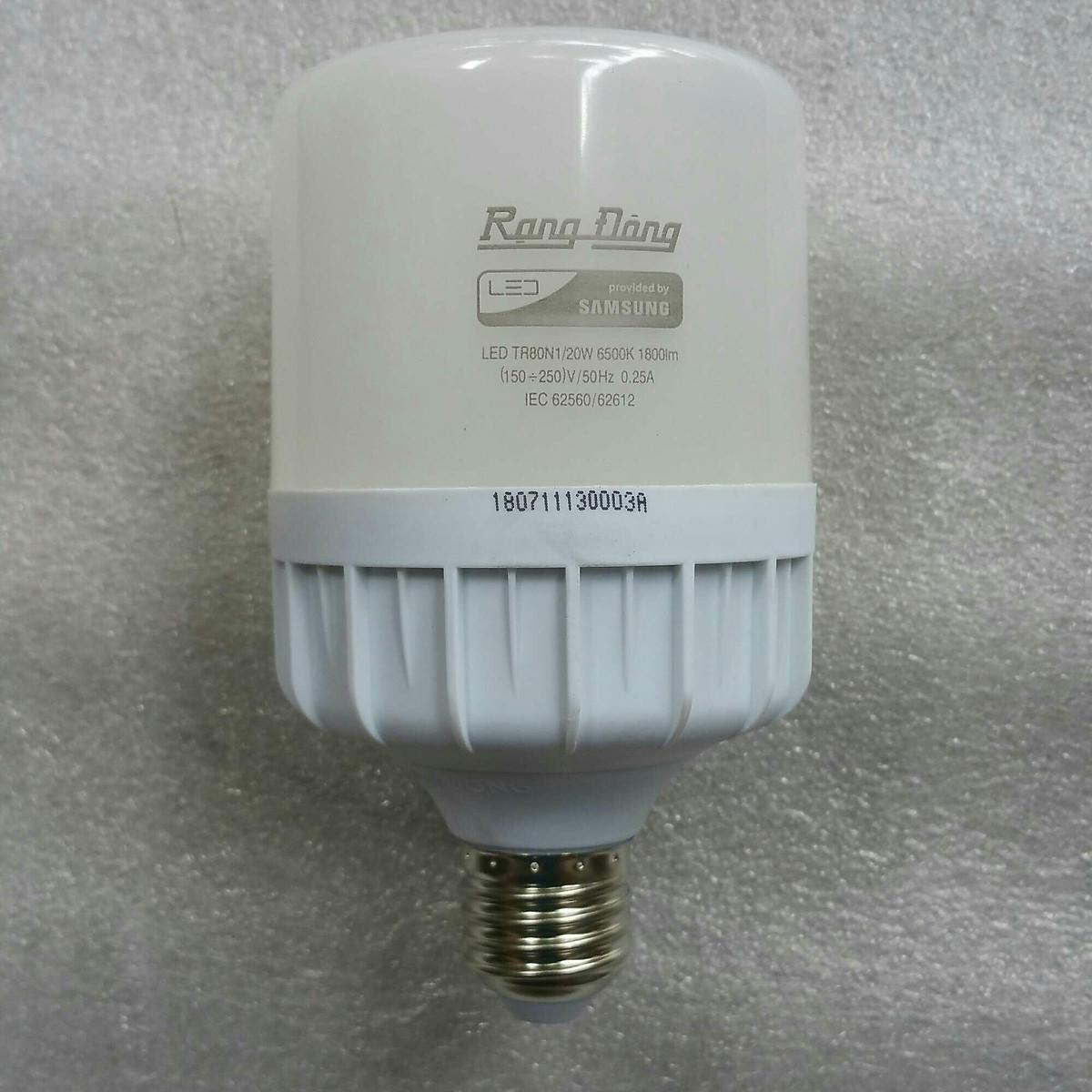 Đèn Led Bulb trụ Rạng Đông, Model: TR80N1/20W.H, đuôi E27, 1 màu, ánh sáng trắng 6500k