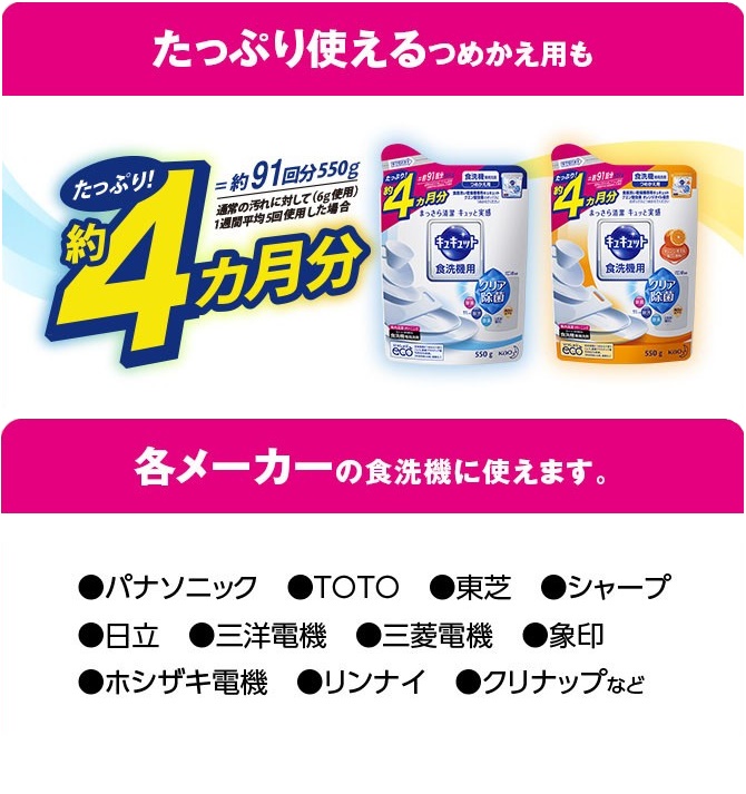 KAO Kyukyuto là sản phẩm chuyên dụng dành cho máy rửa chén bát, giúp máy hoạt động hiệu quả hơn, êm hơn và gia tăng tuổi thọ của máy!