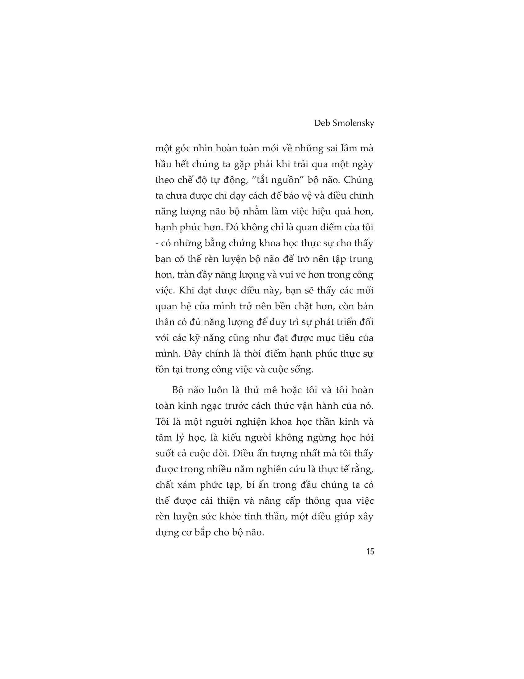 Trong Brain On!, tác giả Deb Smolensky giới thiệu các chiến lược rèn luyện tinh thần có tính thực tiễn cao để bạn sẵn sàng thể hiện bản thân trong môi trường làm việc nhiều áp lực và luôn thay đổi. Điều chúng ta hướng tới không chỉ là hoàn thành các mục tiêu công việc với hiệu suất tối ưu, mà còn là làm điều đó trong khi vẫn đảm bảo được sức khỏe tinh thần và thể chất, tràn đầy năng lượng cũng như tinh thần tích cực.