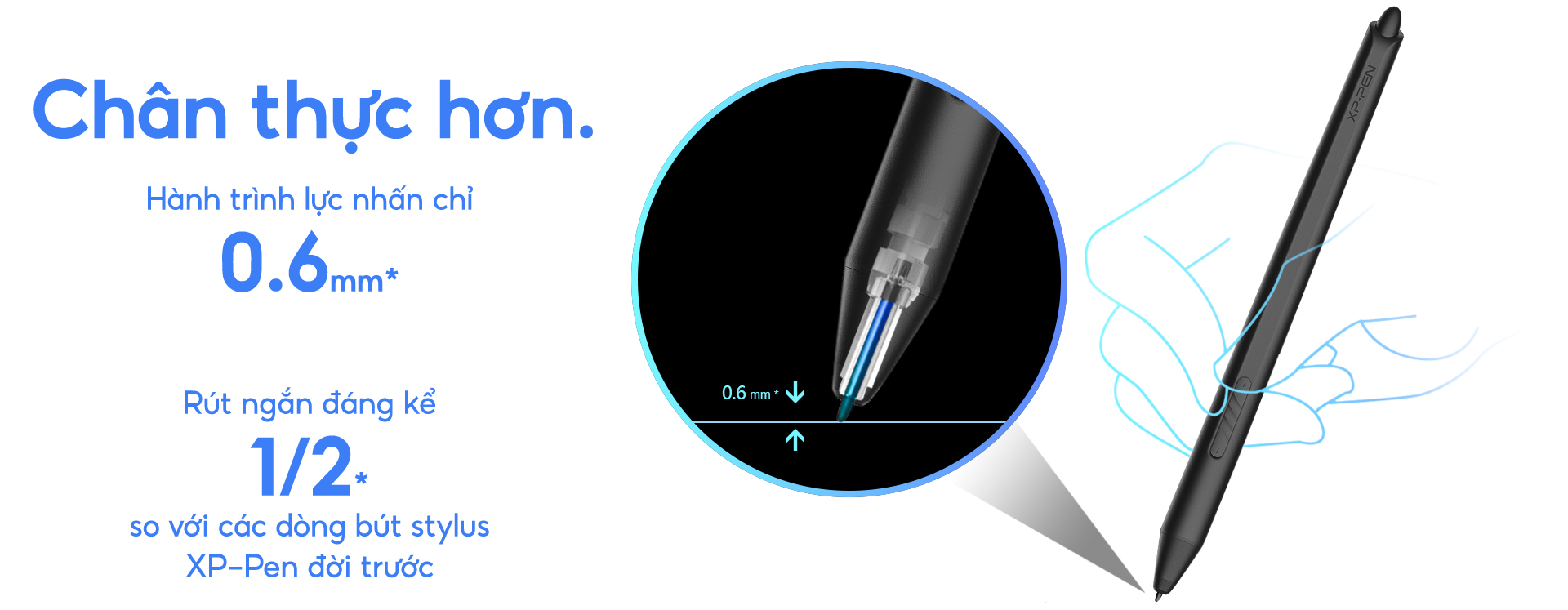 Bút Vẽ Cảm Ứng Stylus X3 Elite Cho Dòng Bảng Vẽ XPPen Dùng Chip X3   Hàng chính hãng XPPen Mã sản phẩm: PH10B Bảo hành 6 tháng   Giới thiệu đến bạn con chip thông minh X3, mở đầu một chương mới của bút stylus XP-Pen: kỷ nguyên chip thông minh. Dù X3 có kích thước siêu nhỏ, nó chứa đựng công nghệ tinh vi nâng cấp đáng kể hiệu quả và cấu trúc bút cảm ứng. Sứ mệnh của chúng tôi là tạo nên công nghệ số hóa đem lại cảm giác chân thực và quen thuộc như khi dùng công cụ truyền thống. Tiếp tục mục tiêu đó thông qua con chip X3 được tích hợp trong dòng bút stylus mới giúp đem lại trải nghiệm chân thực như khi bạn dùng cọ vẽ truyền thống vậy. Với công nghệ chip X3, mọi điều đều có thể trở thành hiện thực!   Nhạy hơn. Công nghệ tự nhiên, cải thiện gấp 10 lần độ nhạy lực nhấn kích hoạt Chip thông minh X3 mới xử lý các tín hiệu điện từ bằng cách mã hóa chúng thành dữ liệu kỹ thuật số. Sự thay đổi này làm tăng gấp 10 lần độ nhạy của lực kích hoạt ban đầu (IAF xuống dưới 3 gram), do đó, tác phẩm nghệ thuật của bạn có thể được tạo ra với nét vẽ thật nhẹ nhàng. Chân thực hơn. Hành trình lực nhấn ngắn nhất. Cảm nhận sự tự nhiên & chân thực Thiết kế bút stylus trước đây phát hiện lực nhấn thông qua cơ chế lò xo bên trong bút. Đầu bút di chuyển lên và xuống trong quá trình tạo, làm gián đoạn việc kiểm soát nét vẽ. Giờ đây, chip thông minh X3 với khả năng tính toán mạnh mẽ đã mang đến cho bút cảm ứng một cấu trúc cảm biến được cải tiến. Thay đổi này làm giảm hành trình rút xuống còn 0,6 mm, dẫn đến nét vẽ ổn định mà không bị chao đảo.   Cải thiện độ ổn định. Ngòi bút chắc chắn đảm bảo nét vẽ ổn định Được cung cấp sức mạnh bởi chip thông minh X3, không có cơ chế lò xo, bút cảm ứng hoạt động tốt hơn bất kỳ bút cảm ứng XP-PEN hiện có nào khác. Với 8192 mức độ nhạy áp suất và chức năng nghiêng 60 độ, bạn sẽ điều khiển dễ dàng, trực quan trong khi tạo tác phẩm nghệ thuật.   Cải thiện độ bền. Bền gấp 2 lần dòng bút stylus đời trước Nhờ thiết kế tổng thể của chip thông minh X3, bút cảm ứng mới tối ưu hóa đáng kể cấu trúc bên trong và loại bỏ các thành phần lò xo tiêu hao của các thiết kế trước đó. Thiết kế mới sẽ tăng khoảng gấp đôi* tuổi thọ của bút cảm ứng.   Hiệu suất hoàn hảo. Giảm nhiễu tín hiệu, cho nét bút rõ ràng & chắc chắn Lần đầu tiên ứng dụng cơ chế xử lý tín hiệu kỹ thuật số và là bước tiến vượt bậc so với cách thức truyền tín hiệu analog thông thường,  các dòng bút cảm ứng chip X3 cung cấp tín hiệu rõ ràng, chuẩn xác và đáng tin cậy nhất từ trước đến nay.