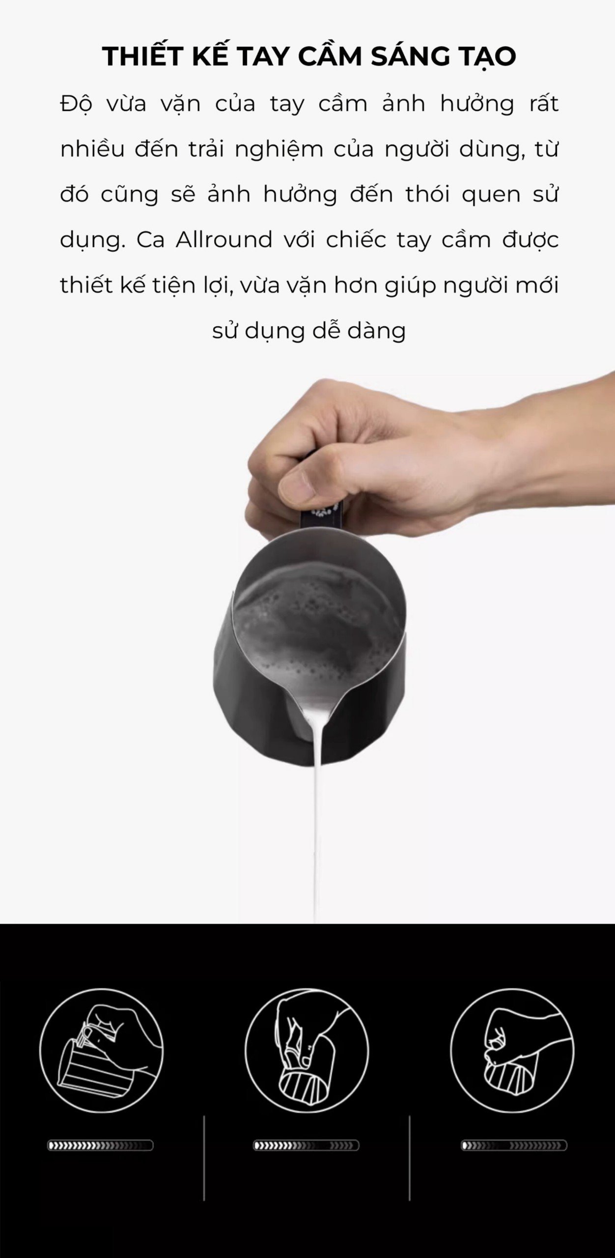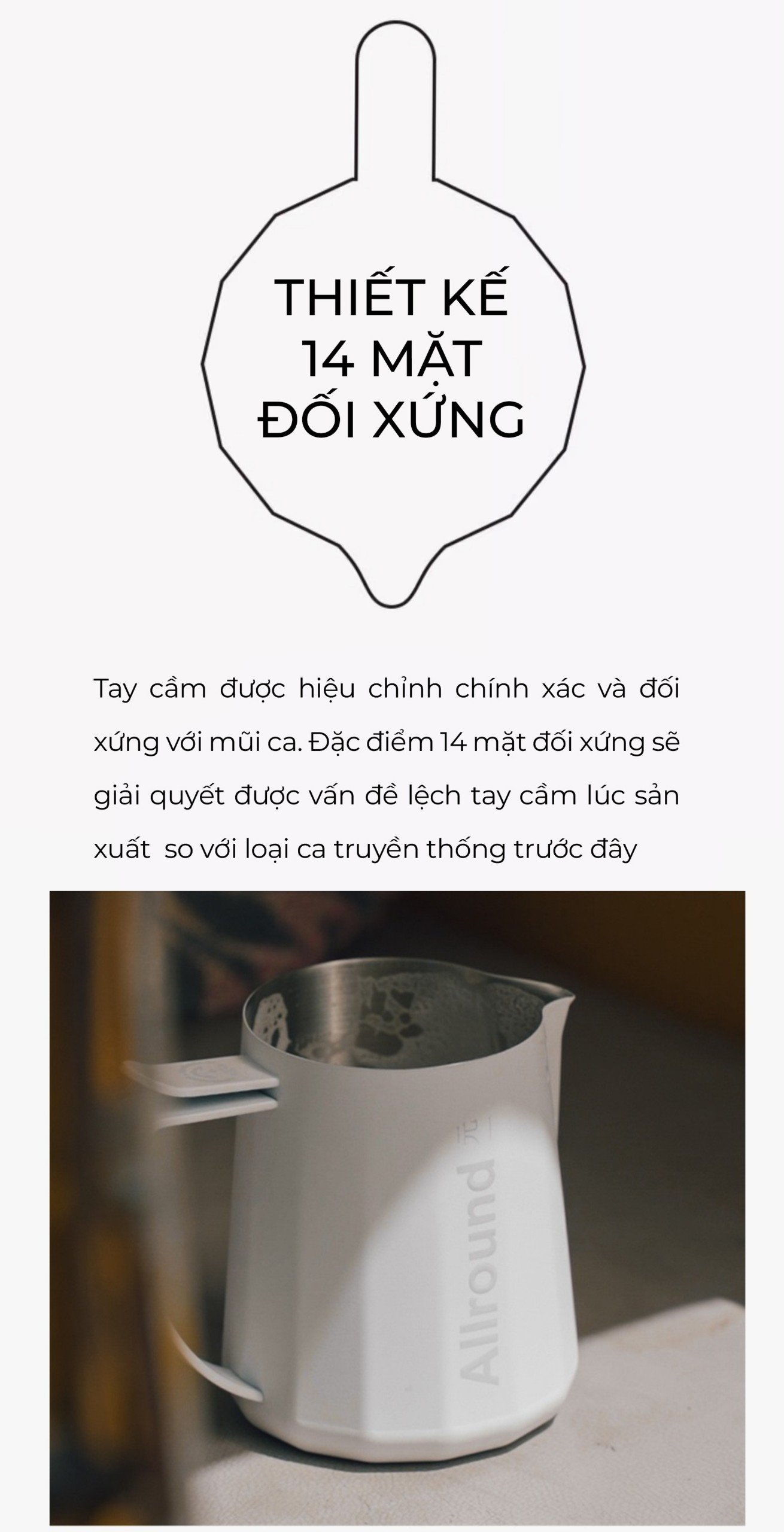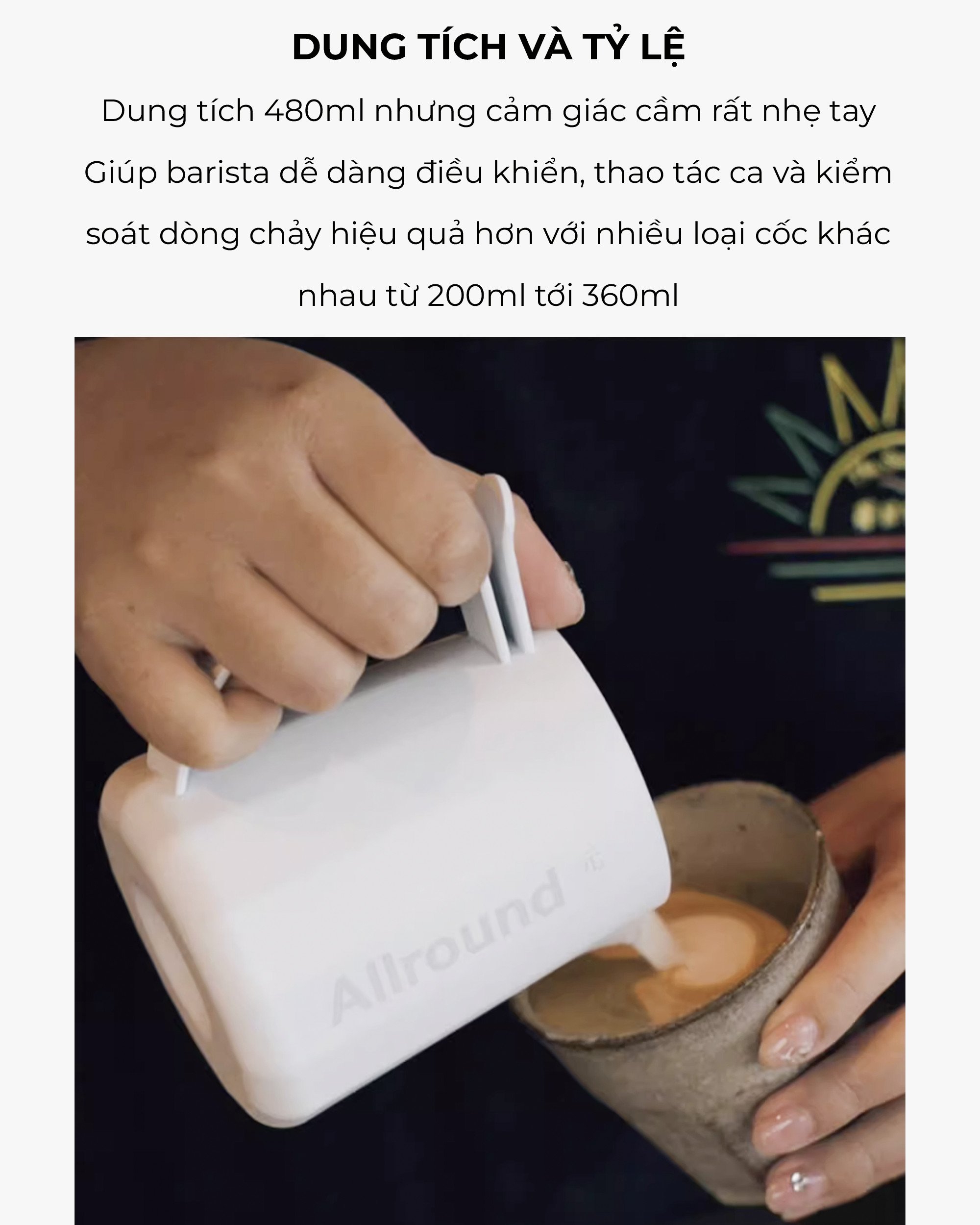 CA ĐÁNH SỮA ALL ROUND 480ml CAFEDE KONA Từ sự chuyên nghiệp lên tầm nghệ nhân Allround_Chiếc ca được các quán quân cuộc thi MBA Latte Art cùng nhau thiết kế. Với thiết kế 14
