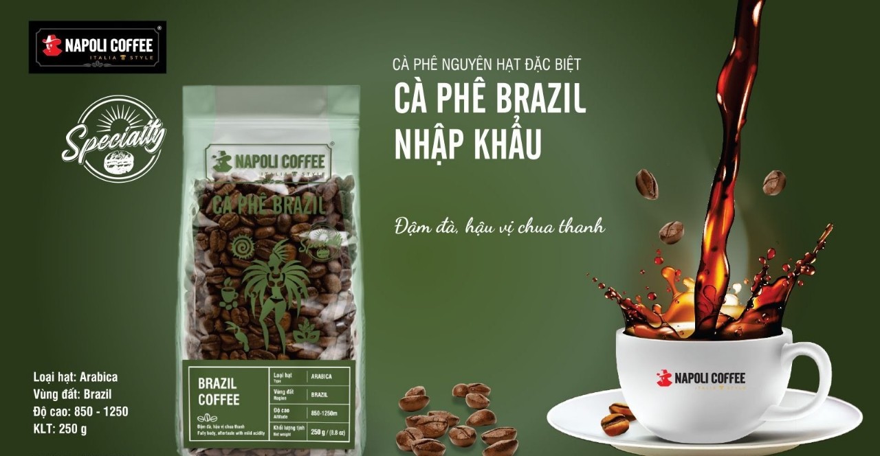 Cà phê Arabica nhập khẩu Brazil rang nguyên hạt dùng pha máy hoặc phin cho hương vị cao cấp 250g/túi NAPOLI - CÀ PHÊ VIỆT - ĐẬM GU ĐÚNG CHẤT • CÀ PHÊ SẠCH: -