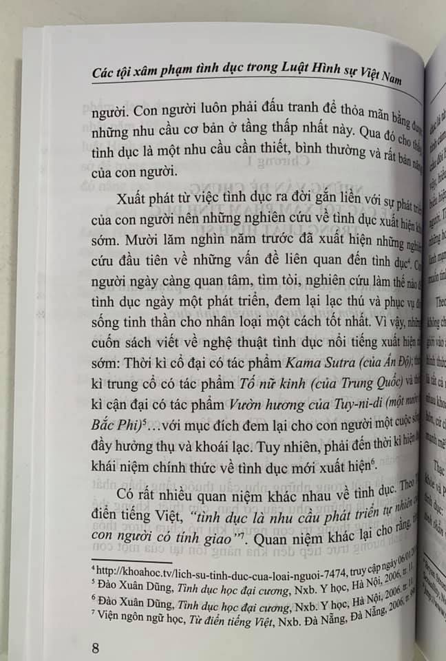 Các tội xâm pham tình dục trong luật hình sự Việt Nam Tác giả: TS. Nguyễn Thị Ngọc Linh Phát hành: 08/2019 Nhà xuất bản: Tư Pháp Sách dày: 255 trang Khổ 14.5x20.5cm Lời giới thiệu: Cuốn sách 'Các tội xâm pham tình dục trong luật hình sự Việt Nam' là công trình nghiên cứu về các tội xâm pham tình dục trong luật hình sự Việt Nam, từ lịch sử đến hiện đại, từ đó, tác giả đã có những đánh giá về thực trạng làm cơ sở đề xuất các kiến nghị với mục tiêu hoàn thiện pháp luật hình sự của nước ta trong giai đoạn tới.