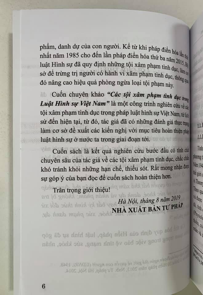 Các tội xâm pham tình dục trong luật hình sự Việt Nam Tác giả: TS. Nguyễn Thị Ngọc Linh Phát hành: 08/2019 Nhà xuất bản: Tư Pháp Sách dày: 255 trang Khổ 14.5x20.5cm