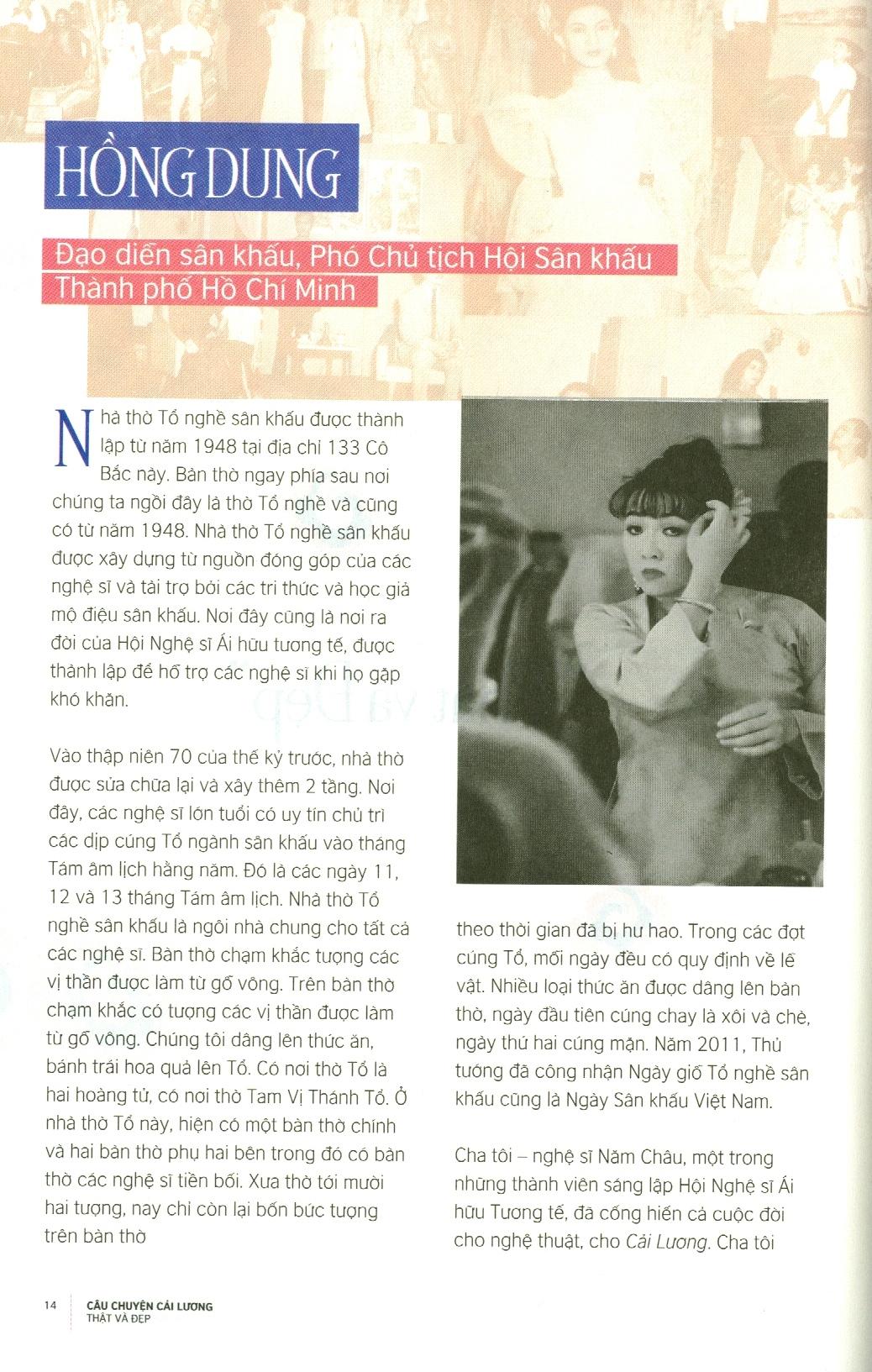 Câu Chuyện Cải Lương Thật Và Đẹp Cuốn sách ngắn này ghi lại những kỷ niệm và hồi ức về nghệ thuật Cải Lương, được thực hiện bởi hai nghiên cứu viên lịch sử truyền khẩu từ Hội đồng Anh là Hugo Frey và Suzanne Joinson qua 10 ngày làm việc ở Thành phố Hồ Chí Minh và Đồng Nai vào tháng 4/2019. Khung phương pháp luận được sử dụng ở đây là dẫn dắt cho các lời kể cũng như khuyến khích chia sẻ các ký ức một cách cởi mở. Mỗi buổi phỏng vấn đều được quay phim và tường thuật. Rất nhiều phiên phỏng vấn kéo dài hơn 40 phút, được hỗ trợ bởi một phiên dịch viên, và có một phim tài liệ đi kèm.