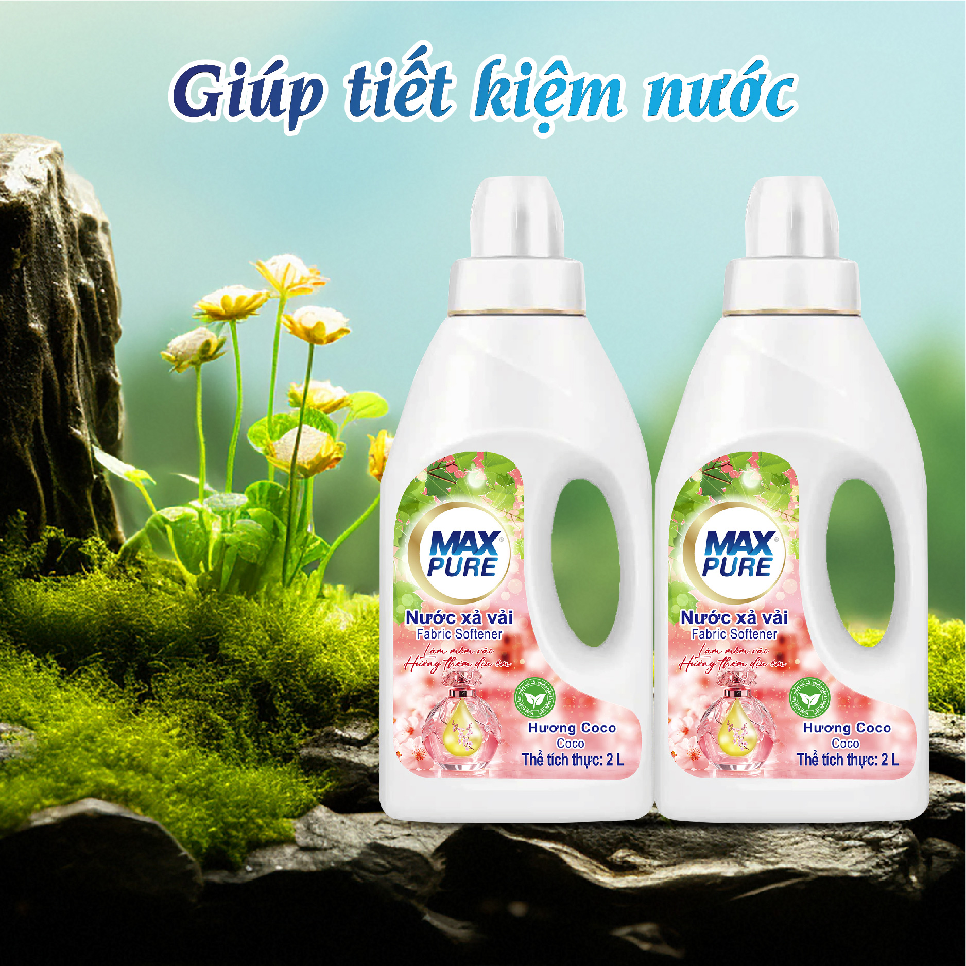 ✨Chai nước xả vải Maxpure Hương Coco 2L - TẶNG 2 vỉ viên treo bồn cầu Evershine