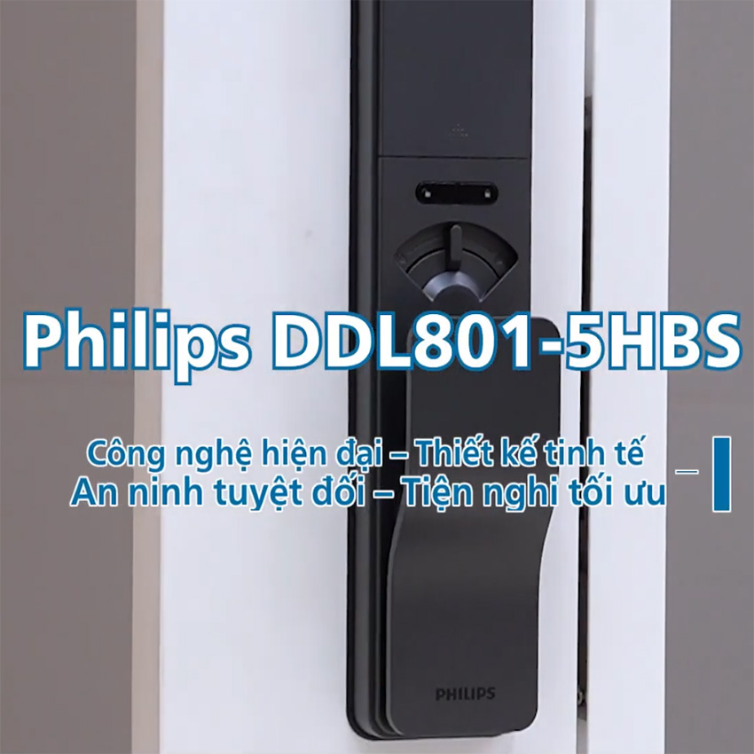 ✨[CHÍNH HÃNG] Khóa cửa thông minh Philips DDL801-5HBS – Điều khiển từ xa, vân tay, thẻ từ, mật khẩu, chìa cơ, tích hợp chuông cửa