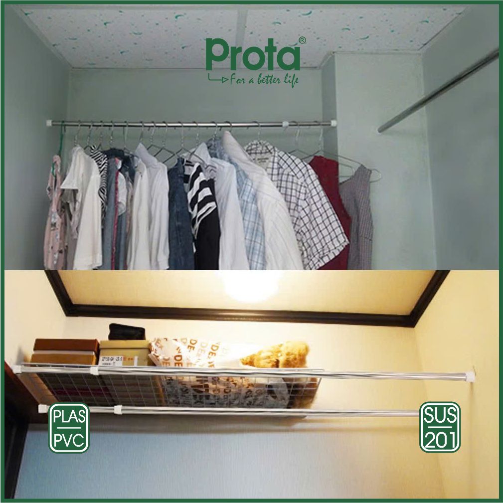 Sản phẩm: Thanh treo tường inox đa năng không cần khoan tường Prota ống 19mm CÁC ĐIỂM NỔI BẬT -Thanh treo tường inox đa năng không cần khoan tường ống 19mm Prota được làm bằng