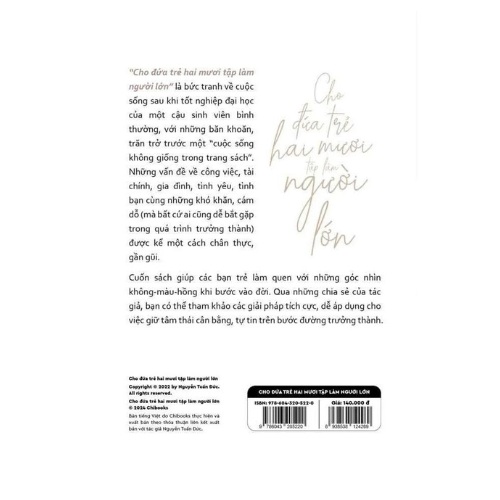 “Cho đứa trẻ hai mươi tập làm người lớn” là bức tranh về cuộc sống sau khi tốt nghiệp đại học của một cậu sinh viên bình thường, với những băn khoăn, trăn trở trước một “cuộc sống không giống trong trang sách”. Những vấn đề về công việc, tài chính, gia đình, tình yêu, tình bạn cùng những khó khăn, cám dỗ (mà bất cứ ai cũng dễ bắt gặp trong quá trình trưởng thành) được kể một cách chân thực, gần gũi.