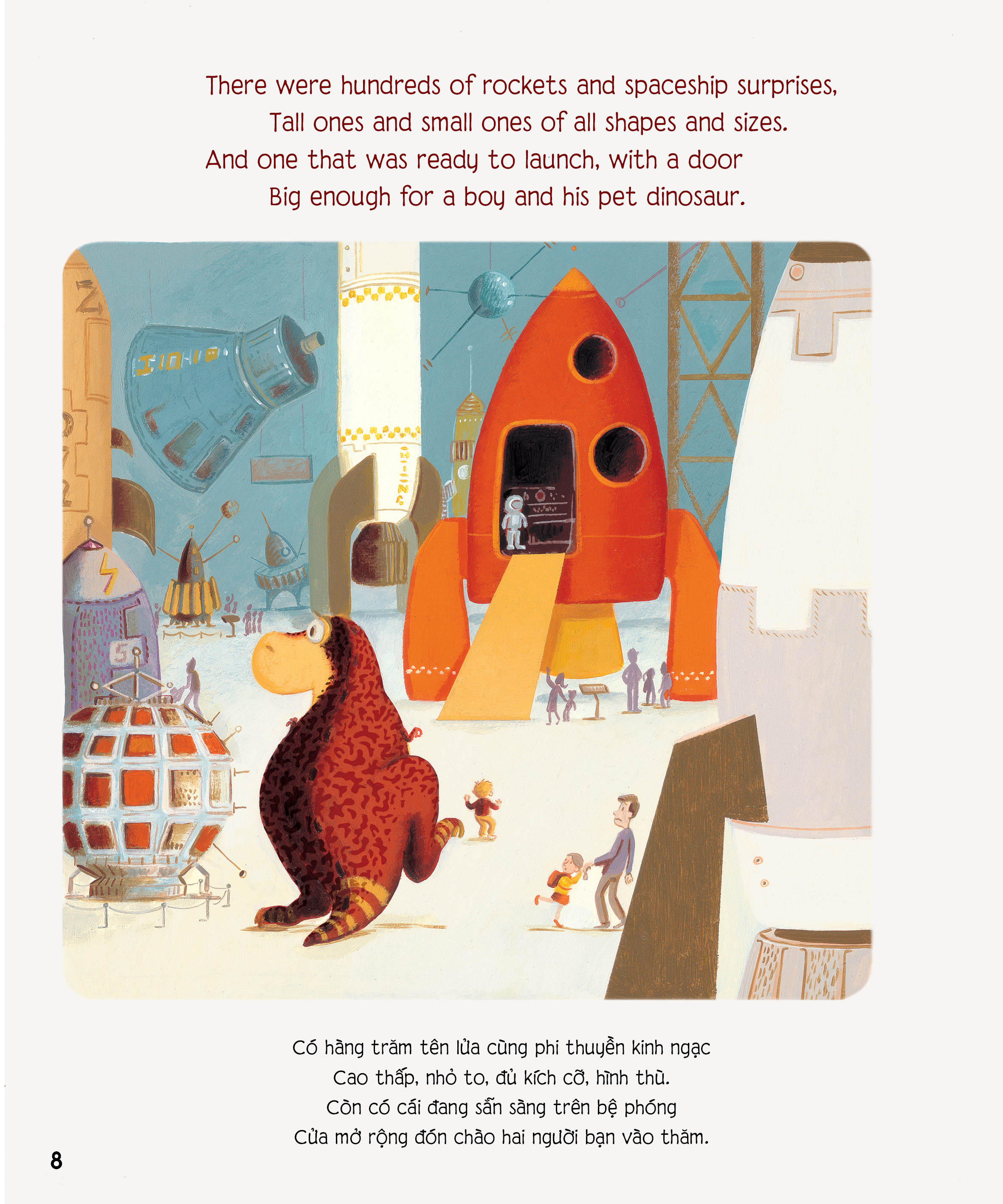 Sách - Chú khủng long tham ăn - Giải cứu Hành tinh - Bài học về khám phá không gian - Phiên bản song ngữ Anh - Việt