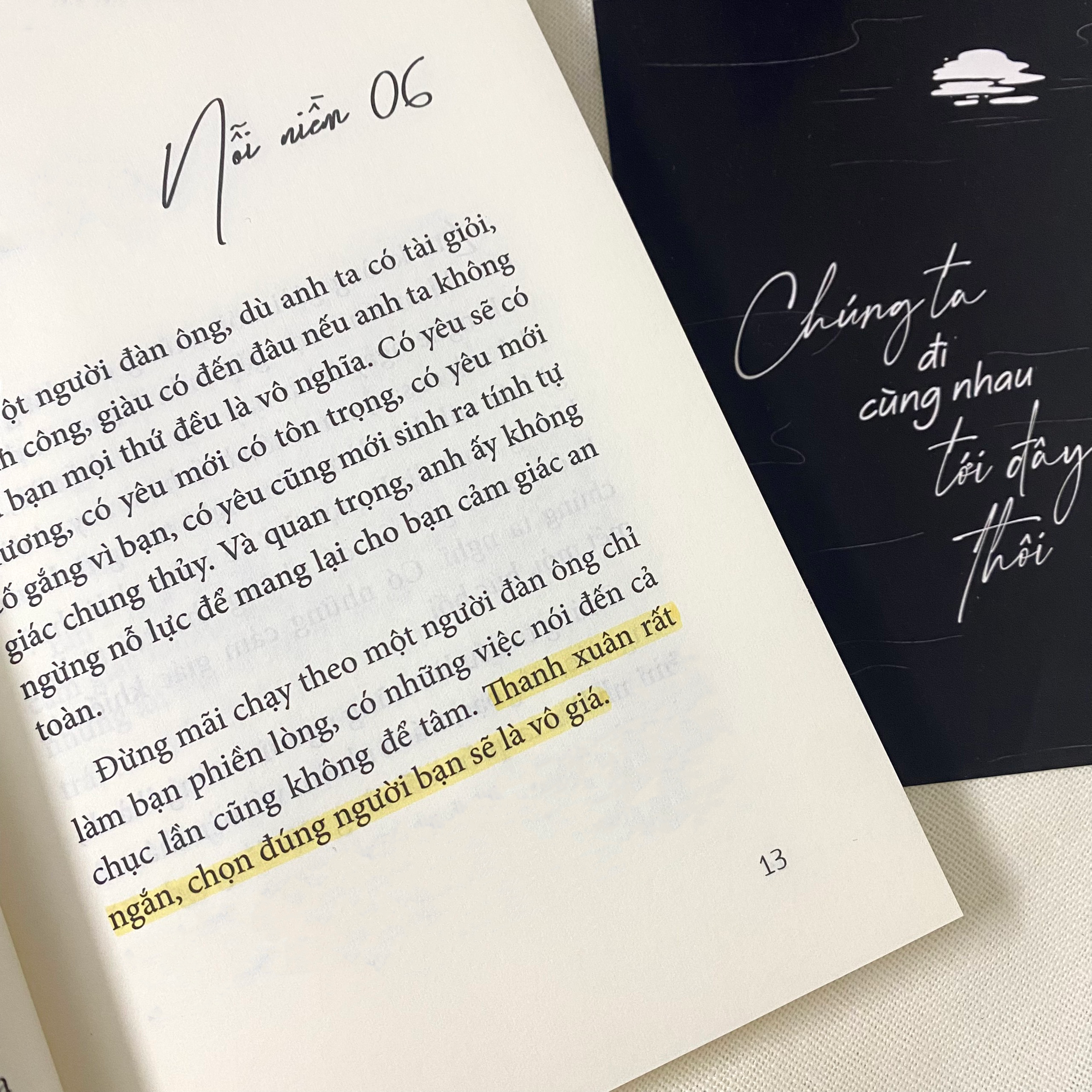 Nếu bạn đang ở trong giai đoạn khó khăn ấy, vậy thì chỉ mong bạn hiểu rằng bạn không cô đơn đâu. Có ai từng yêu mà chưa từng nếm trải đắng cay? Trong cuốn sách “Chúng ta đi cùng nhau tới đây thôi” tác giả Mi Nói đã gói ghém tất cả những kỷ niệm, những nhiệt thành tuổi trẻ, để trải lòng, để đồng cảm với những trái tim đang cần được chữa lành.