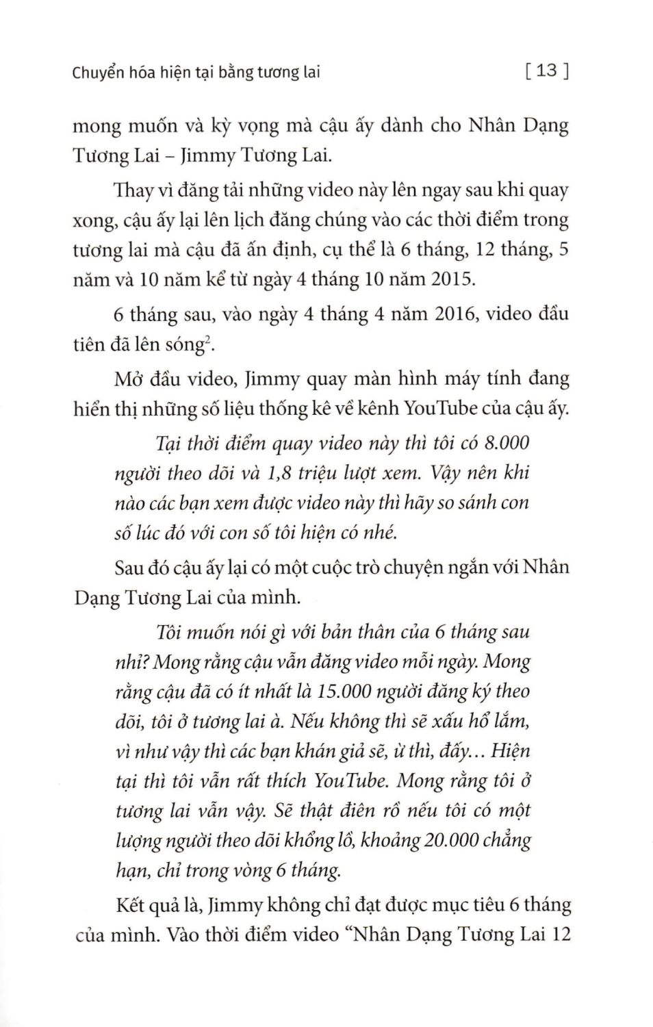 Chất lượng của kết nối giữa bạn và Nhân Dạng Tương Lai sẽ quyết định chất lượng cuộc sống và những hành vi hiện tại của bạn. Nhiều nghiên cứu đã chứng minh rằng, bạn càng có liên hệ mật thiết với Nhân Dạng Tương Lai của mình thì những quyết định bạn đưa ra ở thời điểm hiện tại sẽ càng sáng suốt.