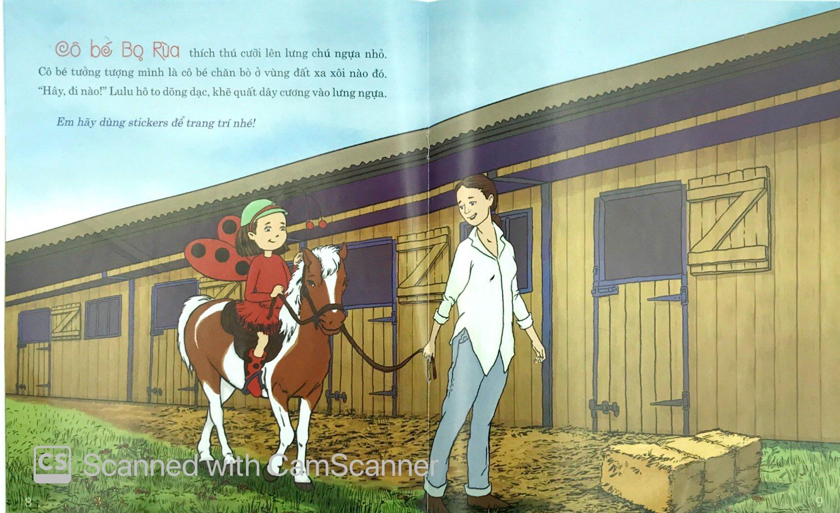 · Cuốn “Cô bé Bọ Rùa về nông trại” (Đọc truyện – Dán hình): Một ngày đẹp trời, Cô bé Bọ Rùa và bố mẹ về thăm nông trại. Em hãy cùng Cô bé Bọ Rùa trang trí cho nông trại thật xinh đẹp với 75 stickers nhé!