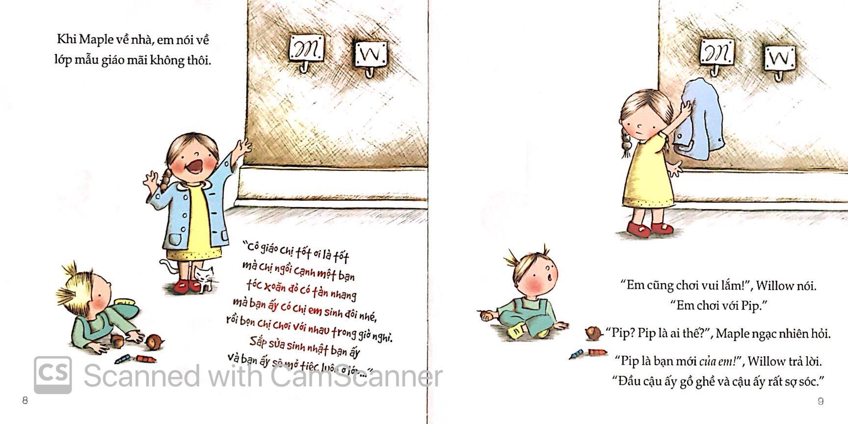 Cuốn Chị đi học, em ở nhà thuộc bộ sách “Có chị, có em” - dành cho trẻ 3 – 6 tuổi, kể về hai chị em gái Maple và Willow vô cùng đáng yêu. Đó là những mẩu chuyện nho nhỏ, những hoạt động vui chơi, khám phá hằng ngày của hai cô bé, có niềm vui, có nỗi buồn, có cả những hờn dỗi, nhưng bao trùm lên tất cả là tình cảm chị em ấm ấp.