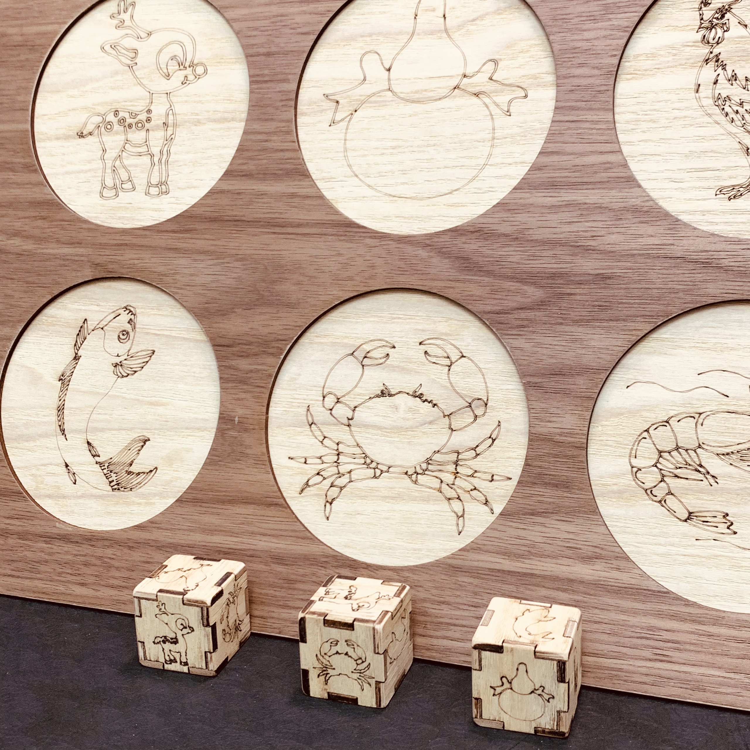BÀN CHƠI BẦU CUA TÔM CÁ BẰNG GỖ Cách chơi đơn giản: Có 6 linh vật lần lượt là: BẦU-CUA -TÔM-CÁ-CUA-GÀ chọn ra một người làm nhà quản lý và đổ xí ngầu,người chơi sẽ