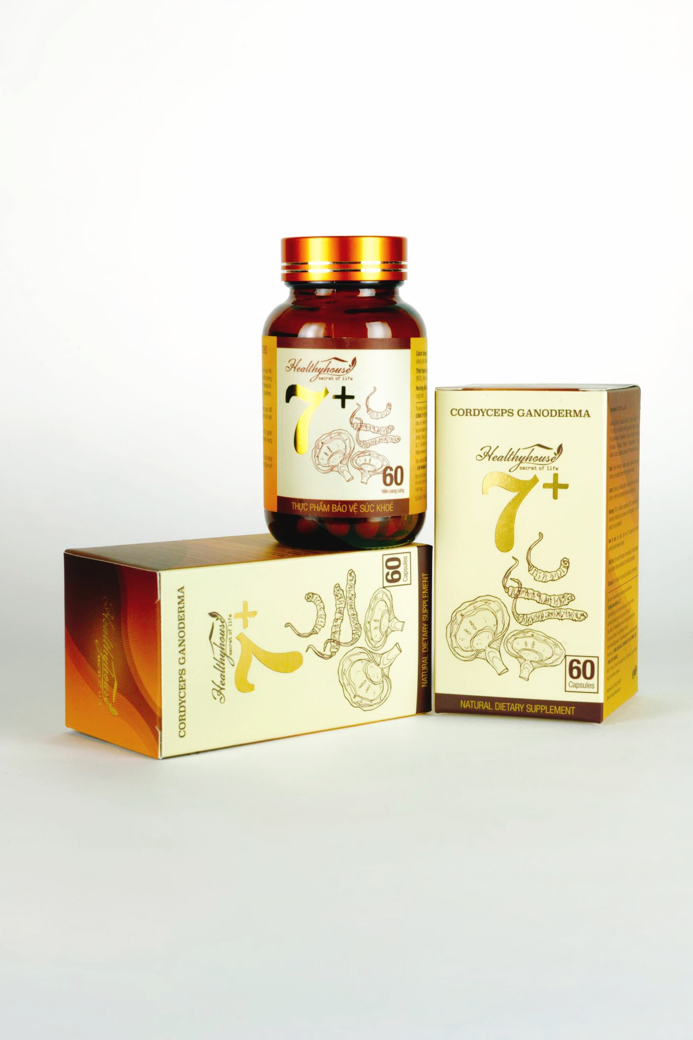 Combo 1 hộp Đông Trùng Linh Chi 7+ Hỗ Trợ Tăng Đề Kháng, Giảm Mệt Mỏi và 1 Hộp Viên Uống 9+ Tốt Gan Khỏe Người, Hộp 60 Viên Quà tặng Hộp gỗ + Túi