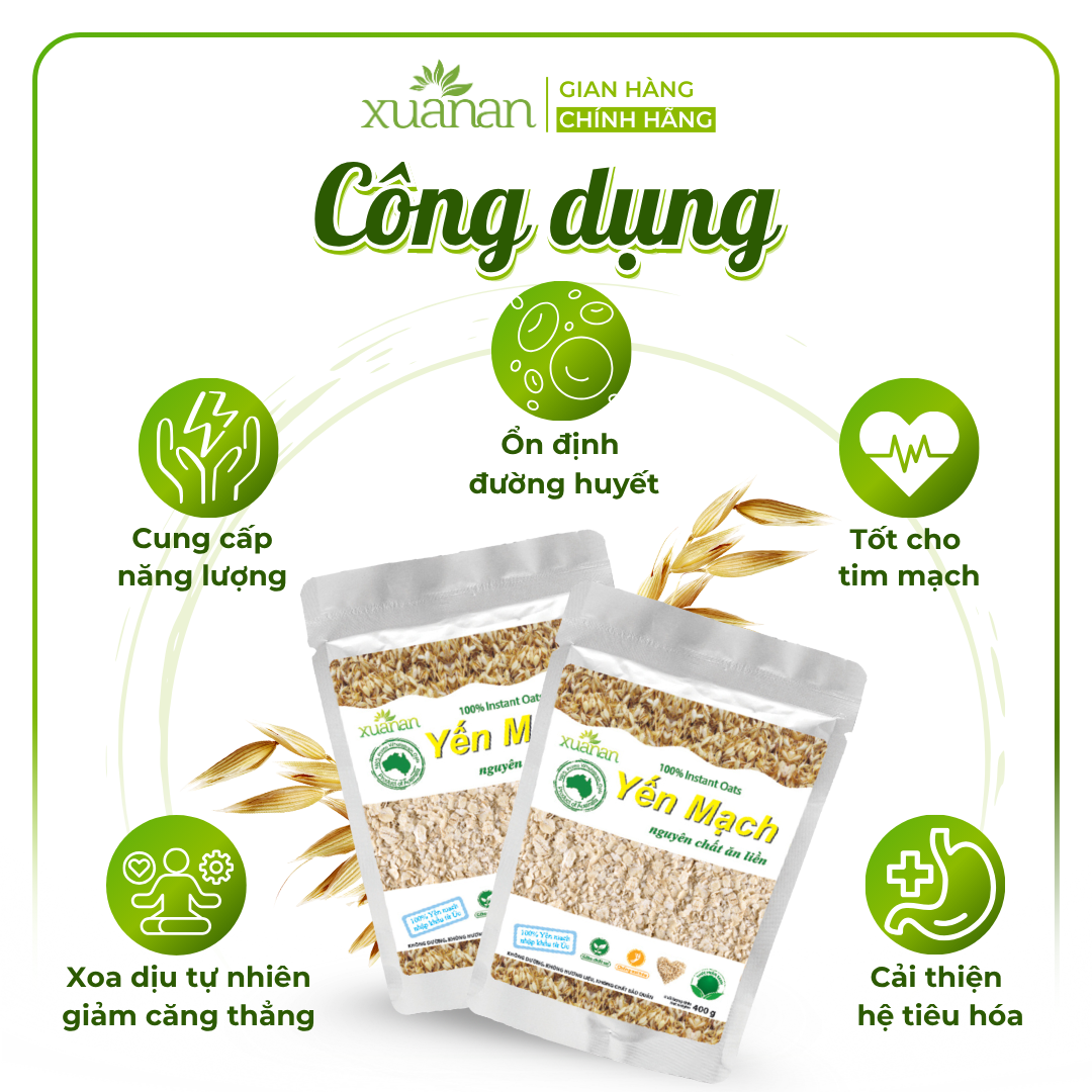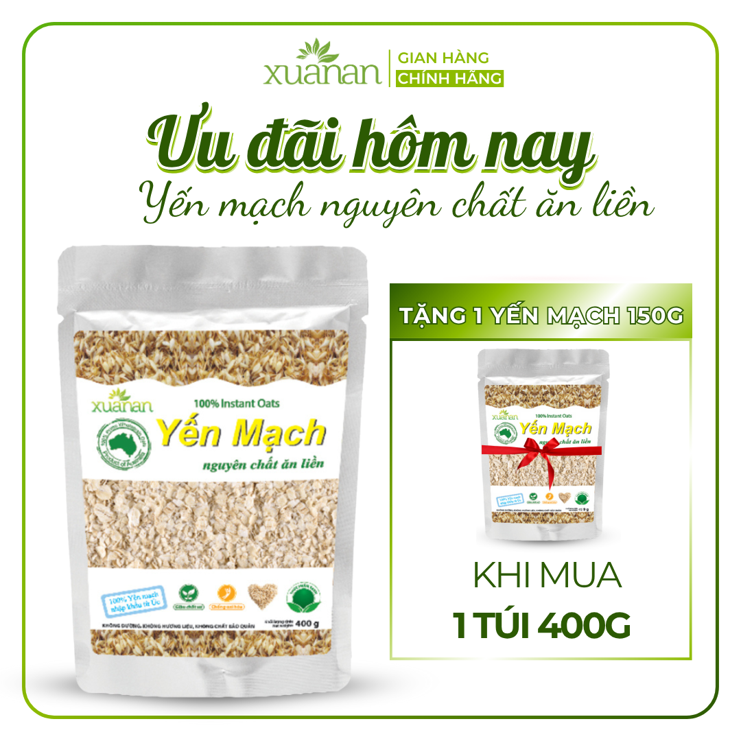 Yến mạch là loại ngũ cốc giàu chất xơ, giàu đạm, vitamin và dưỡng chất tự nhiên. Yến mạch nguyên chất Xuân An (Instant Oats) 100% được nhập khẩu từ ÚC.